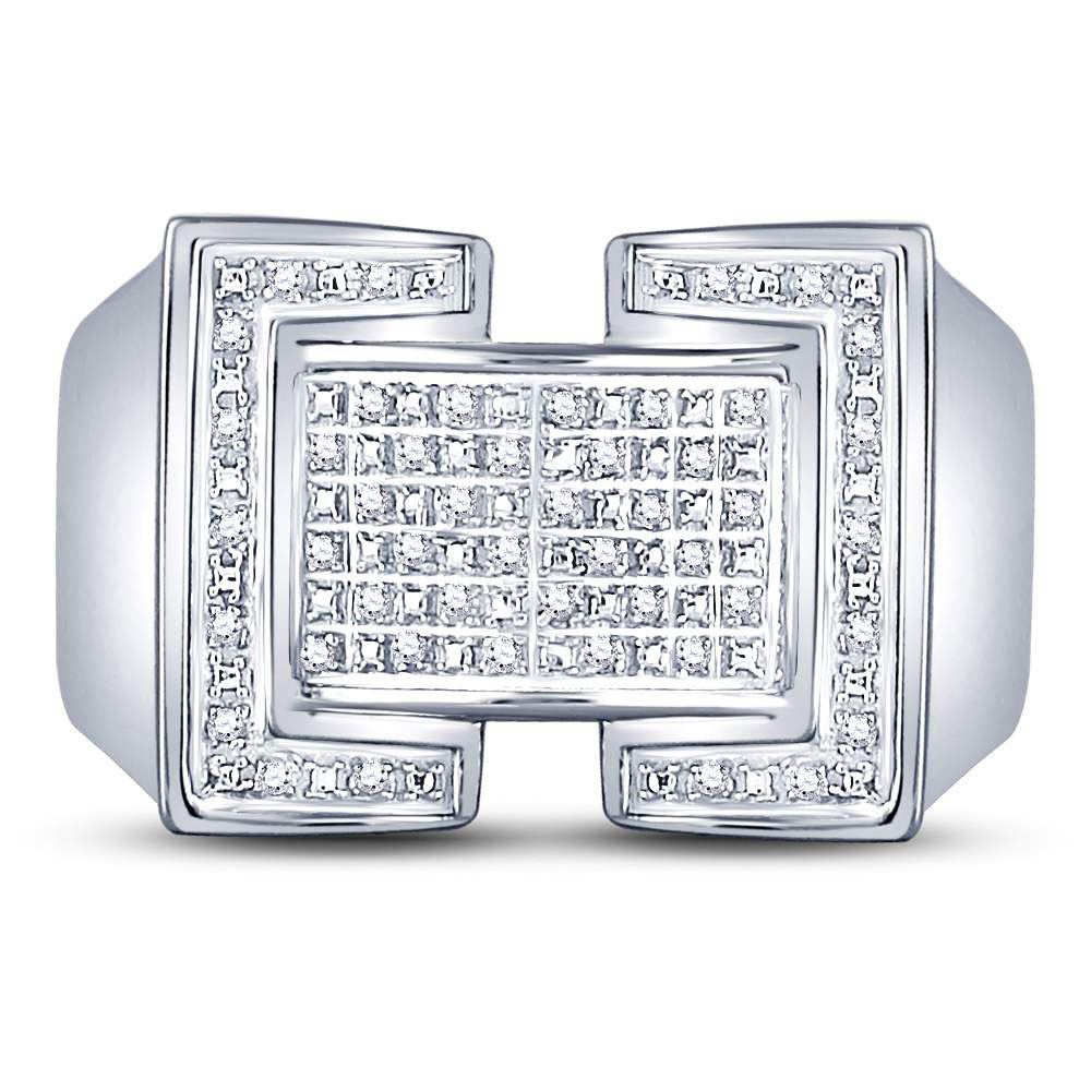 Sterling Silver Mens Round Diamond Domed Rectangle Cluster Ring 1/8 Cttw