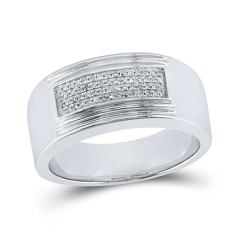 Sterling Silver Mens Round Diamond Rectangle Cluster Band Ring 1/6 Cttw