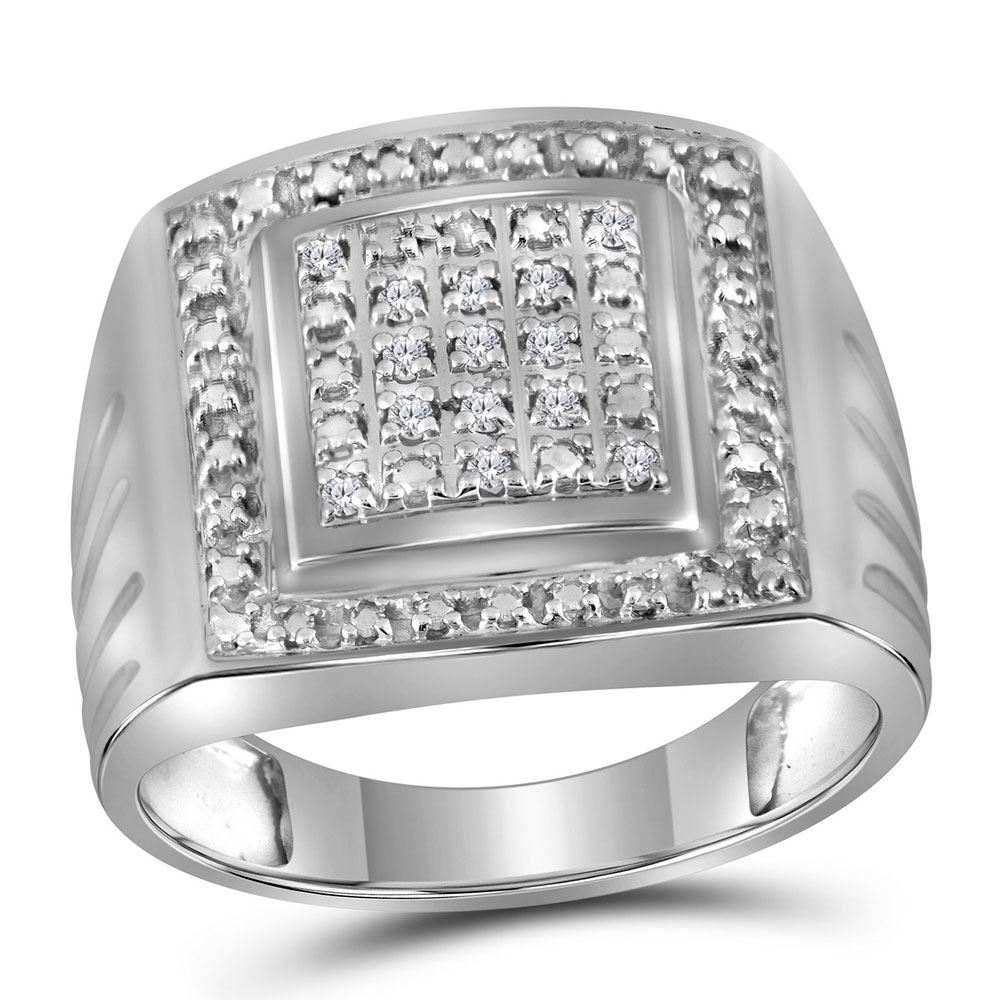 Sterling Silver Mens Round Diamond Square Frame Cluster Ring 1/10 Cttw
