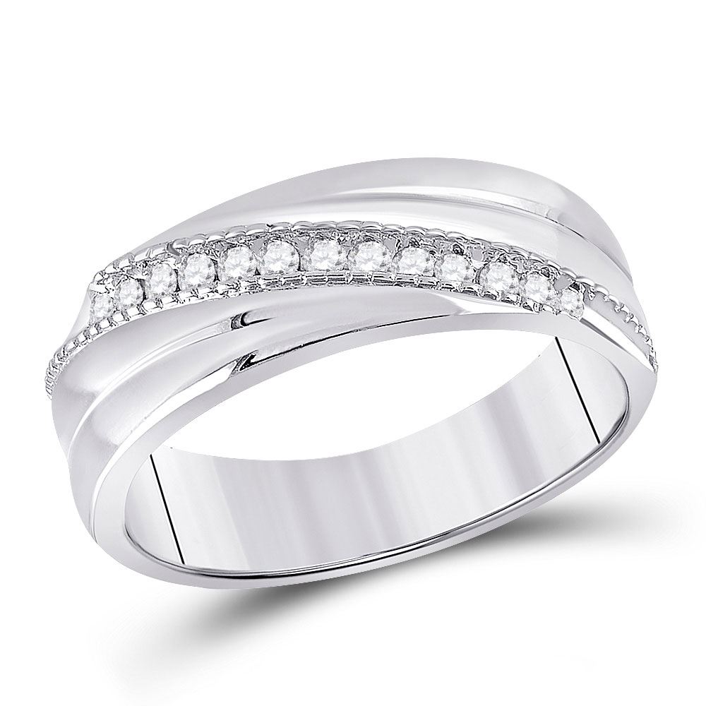 Sterling Silver Mens Round Diamond Wedding Diagonal Row Band Ring 1/5 Cttw