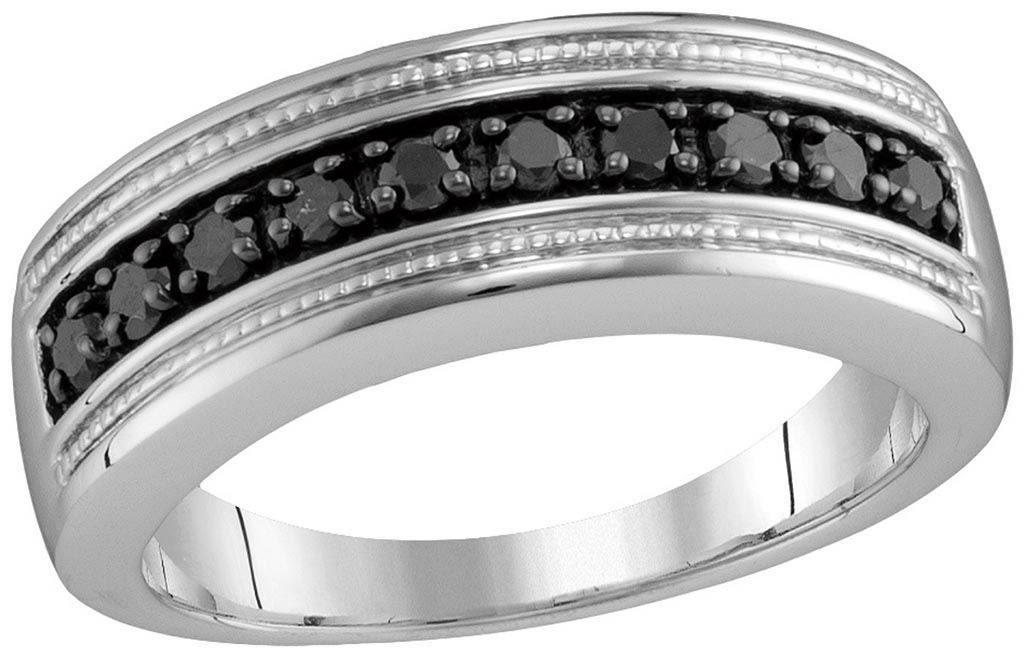Sterling Silver Mens Round Black Colored Diamond Milgra **|**|** Sterling Silver Mens Round Black Colored Diamond Milgrain Wedding Anniversary Band Ring 1/2 Cttw