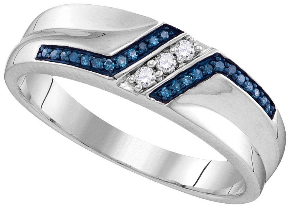 Sterling Silver Mens Round Blue Colored Diamond Wedding **|**|** Sterling Silver Mens Round Blue Colored Diamond Wedding Band 1/5 Cttw