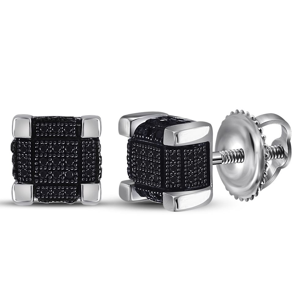Sterling Silver Mens Round Color Enhanced Black Diamond **|**|** Sterling Silver Mens Round Color Enhanced Black Diamond 3D Cube Stud Earrings 1/4 Cttw