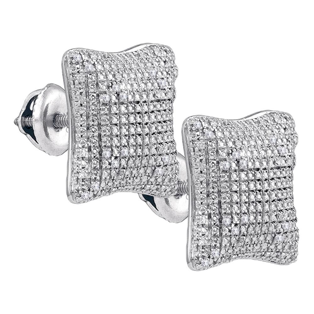 Sterling Silver Mens Round Diamond Puffed Square Cluste **|**|** Sterling Silver Mens Round Diamond Puffed Square Cluster Earrings 1/6 Cttw