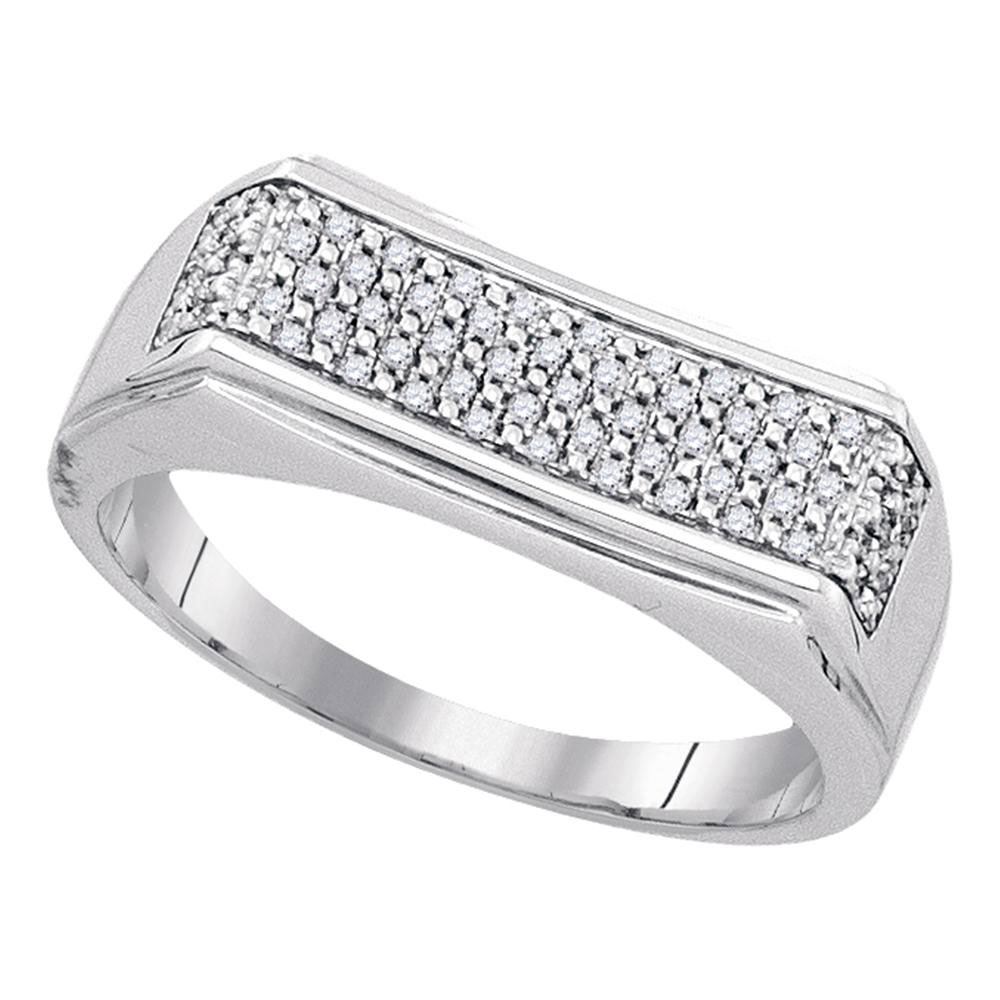 Sterling Silver Mens Round Diamond Rectangle Band Ring 1/6 Cttw