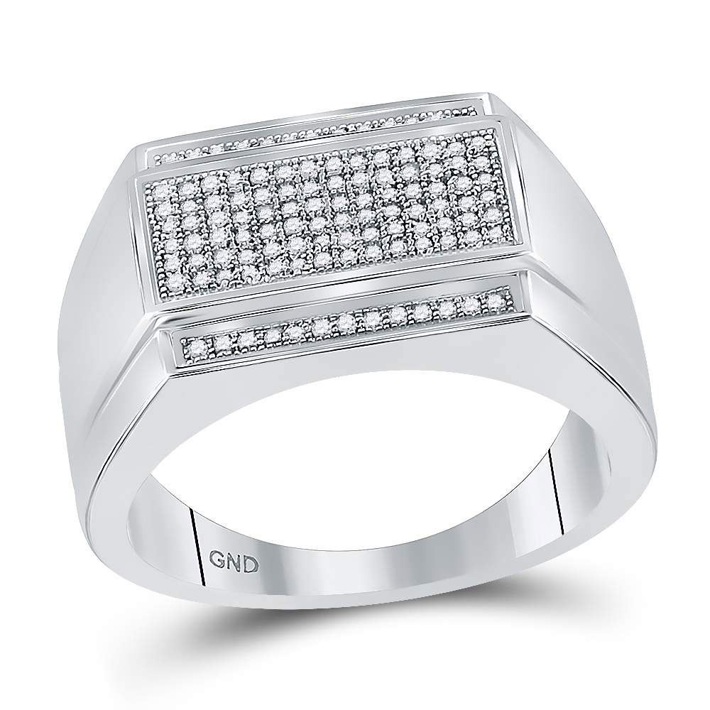Sterling Silver Mens Round Diamond Rectangle Cluster Fashion Ring 1/3 Cttw
