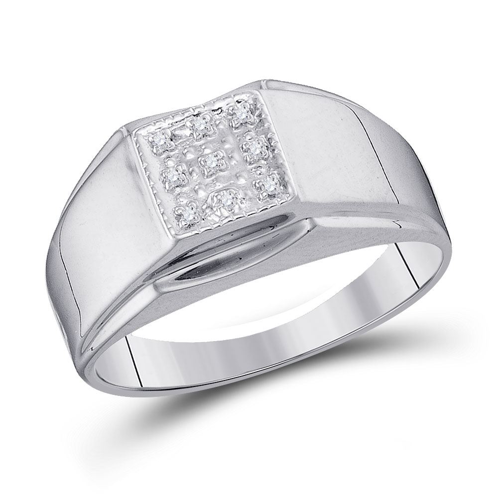 Sterling Silver Mens Round Diamond Square Cluster Ring .03 Cttw