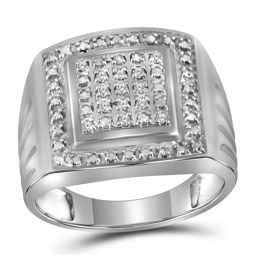 Sterling Silver Mens Round Diamond Square Frame Cluster **|**|** Sterling Silver Mens Round Diamond Square Frame Cluster Ring 1/10 Cttw