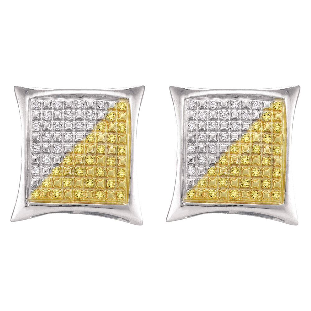 Sterling Silver Mens Round Yellow Color Enhanced Diamon **|**|** Sterling Silver Mens Round Yellow Color Enhanced Diamond Square Kite Earrings 1/4 Cttw