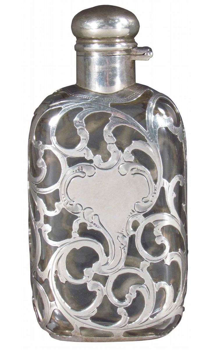 Sterling Silver Metal Overlay Flask. Excellent condition. 4 3/4 inches tall.