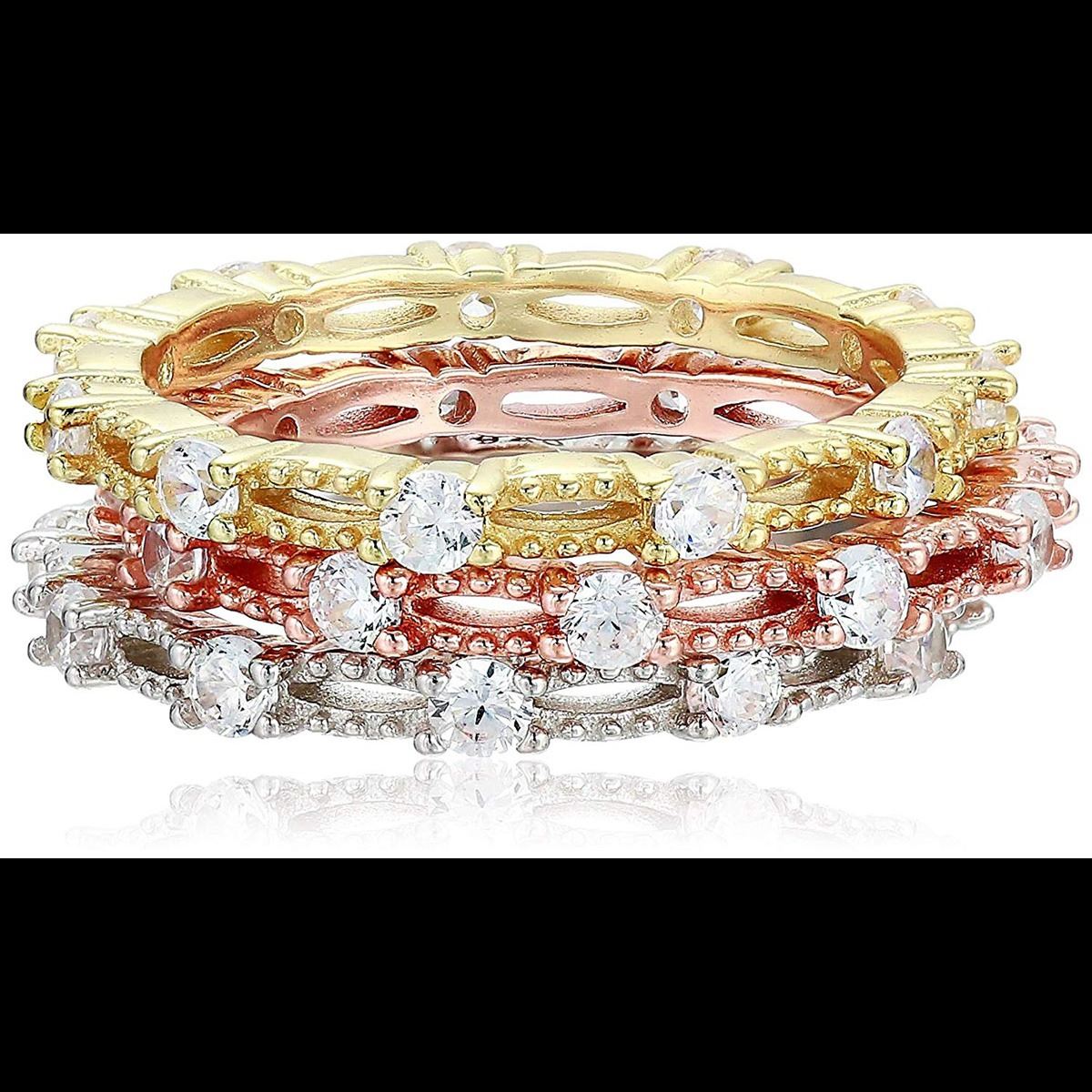 Sterling Silver Milgraine Tricolor Stack Ring size 9 . .. This is made of solid 925 Sterling Silver and each piece is carefully trademarked with the metal purity for certification. Each piece is stamped 925 and guarantees quality and craft. DESIGN & FINISH: Each piece is carefully designed from scratch by our design department and we present to you our finished product. We trust that you will greatly enjoy the quality of our product! PLATING & COLOR: This ring is coated with the highest quality of rhodium, giving you long lasting durability and color. This allows the product to maintain its colors over long periods of time. PACKAGING: Each precious piece is carefully packed in our beautiful gift box. We trust that you will really enjoy our product and it would make a great gift for all!