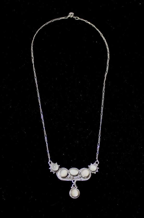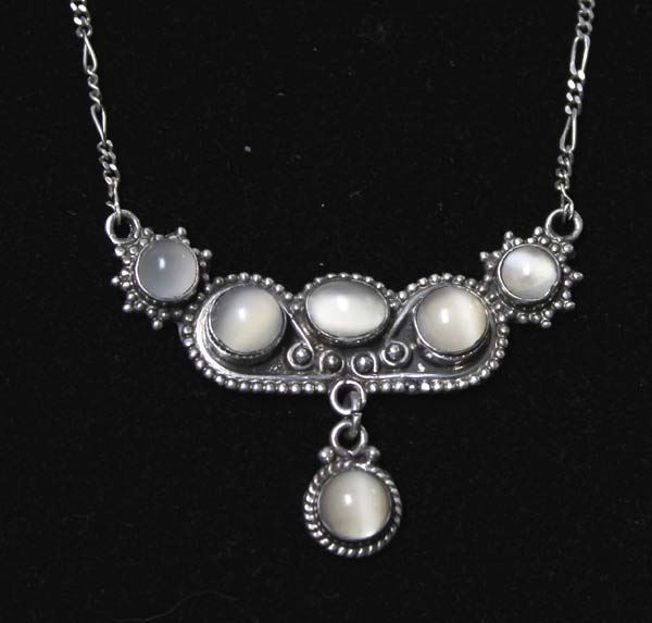 Sterling Silver Moonstone Necklace, measures 18'' end to end, pendant measures 1 7/8''W x 1.25''H, 11.6g in total wt.