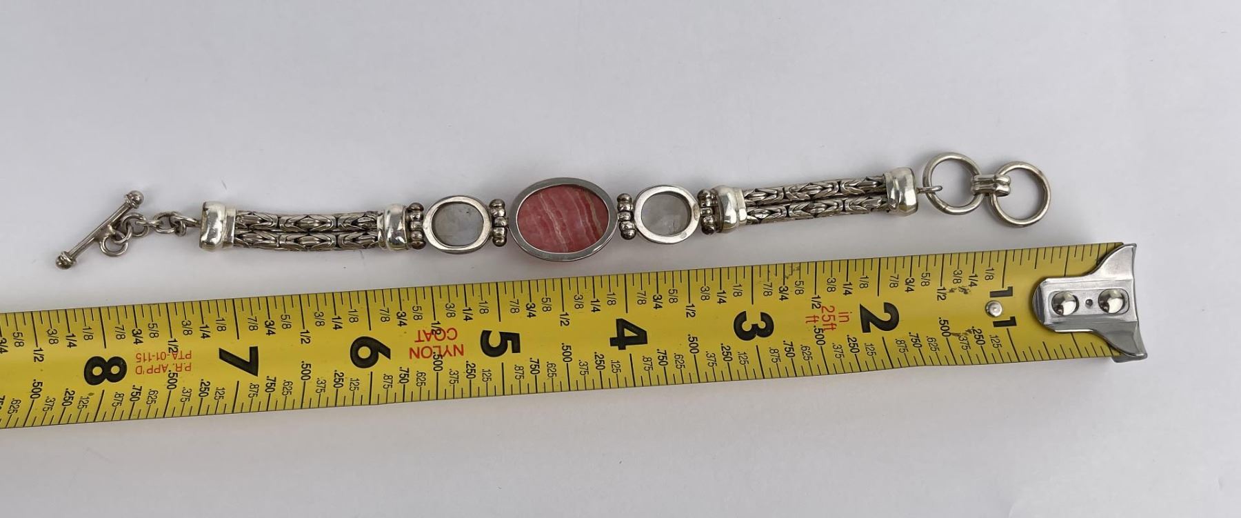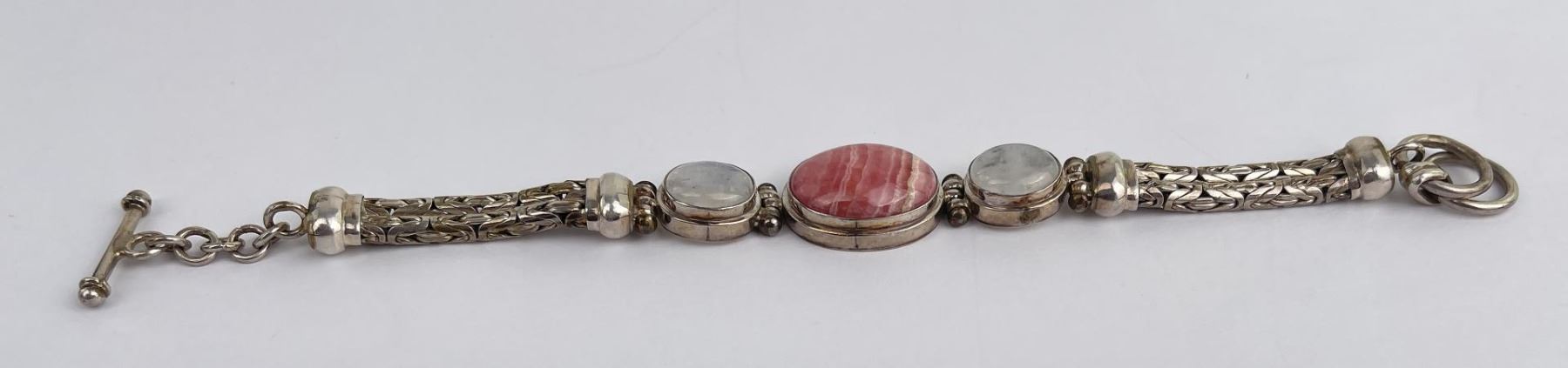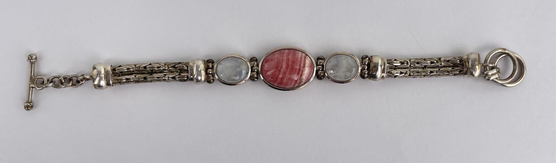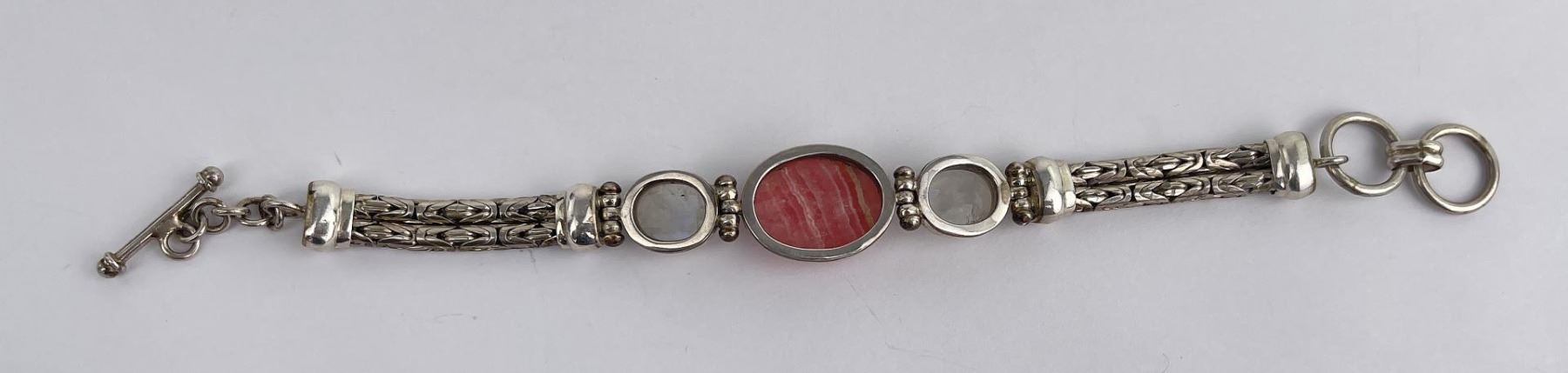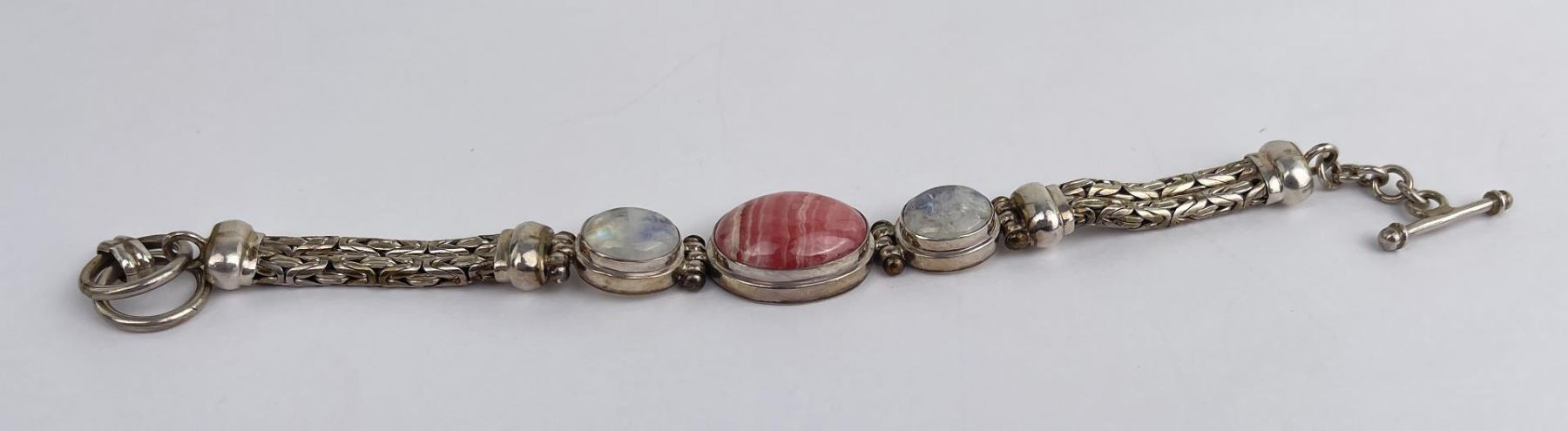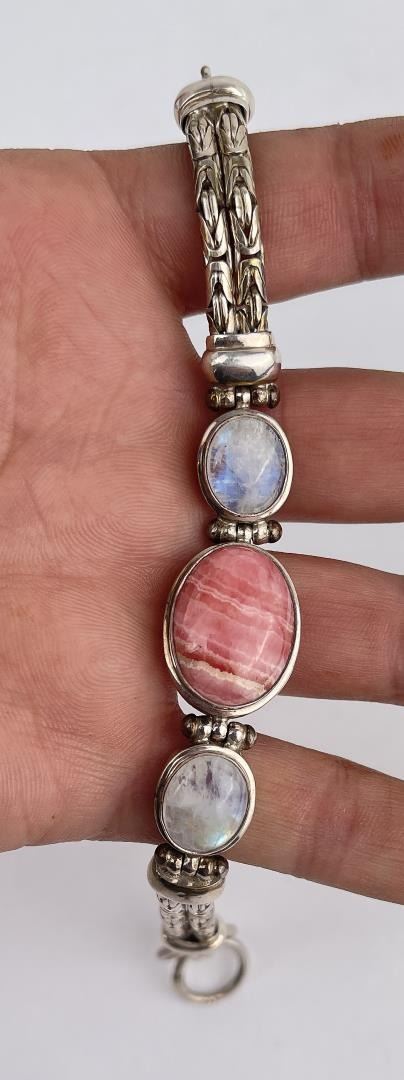 Nice bracelet. Sterling Silver set with Moonstone and Rhodochrosite.