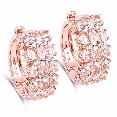 Morganite Oval 5x4mm - 10Pcs + Morganite Oval 4x3mm - 20Pcs + White Diamond S/C Round 1.50mm - 16Pcs ( With J BACK ) (I2 clarity, I-J color) ( White Pan Rhodium )