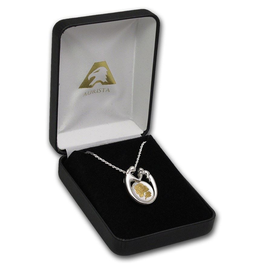 Sterling Silver Mother & Child Rose Gilded Necklace