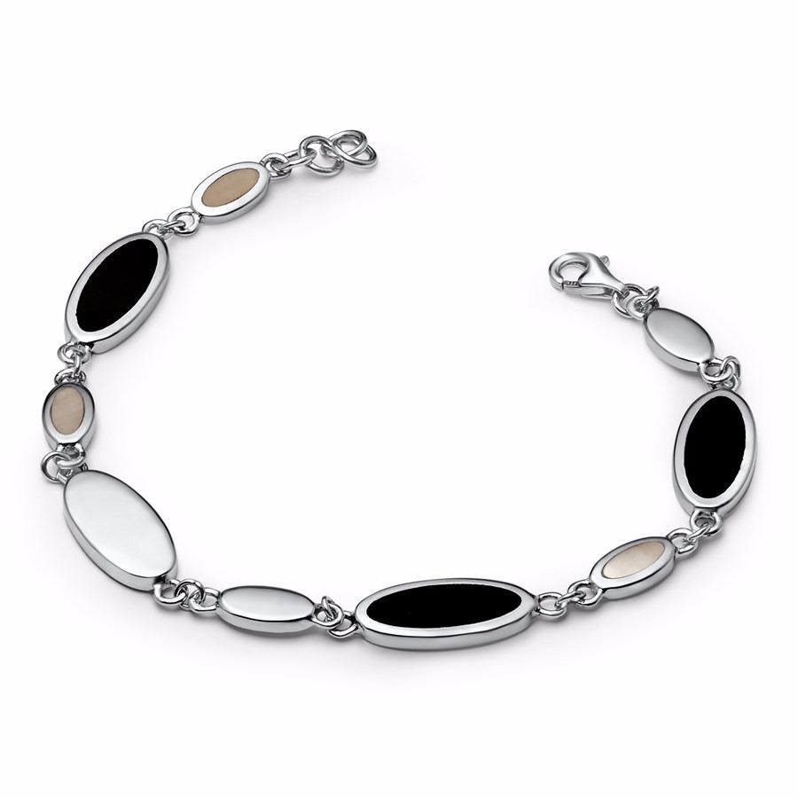 One Sterling Silver Mother of Pearl and Onyx Bracelet.