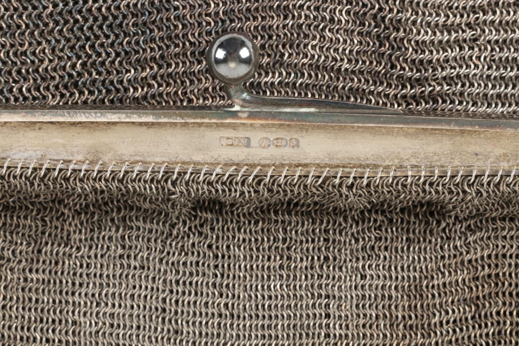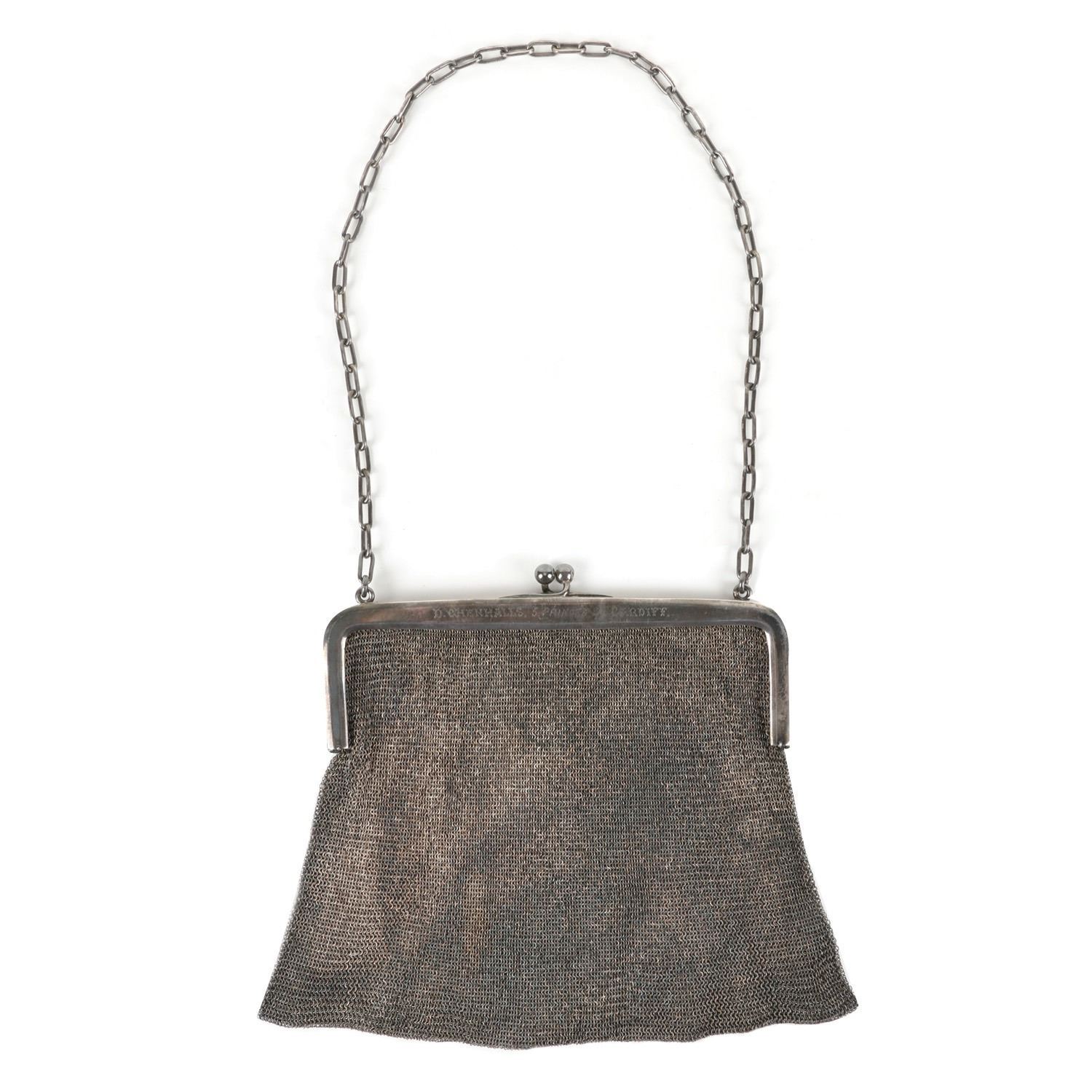 Lot 58 - Dated "1916". Metal mesh. Frame hallmarked '925' and 'B & JM'. Sterling Silver. 7" w. Possibly a slight amount of mesh detachment at hinge points. Gross weight, 376g. $200-300.