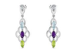 Sterling Silver Multi Gemstone Earrings - PAIR 06.00 X 03.00 MM