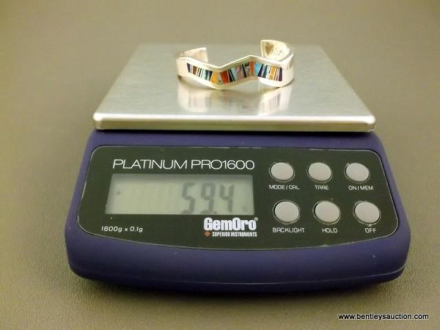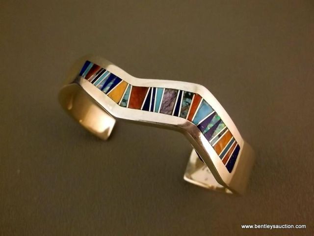 Sterling Silver & Multi-color Stone Inlay Bracelet Marked "Marquerita McCray", Calvin Begay, TSF Wei