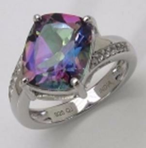 Mystic Quartz Cushion 12x10mm - 1Pc + White Topaz Round 1.25mm - 12Pcs ( Centre Stone Height : 6.20mm )