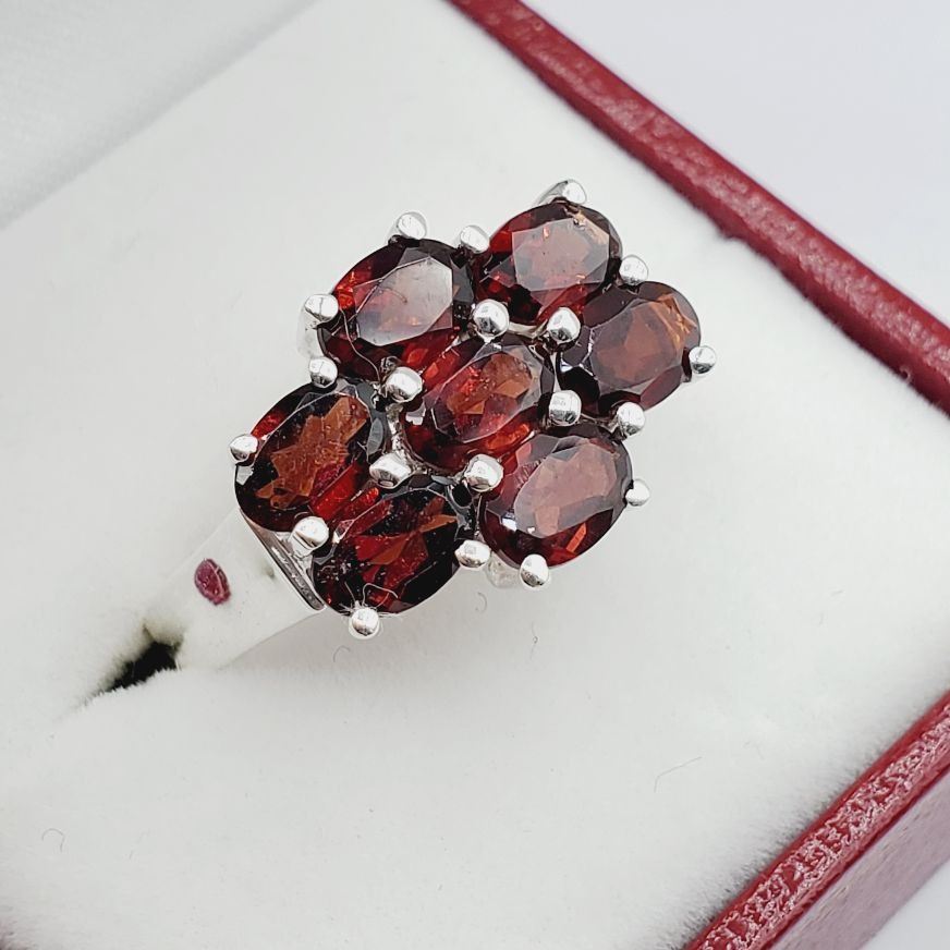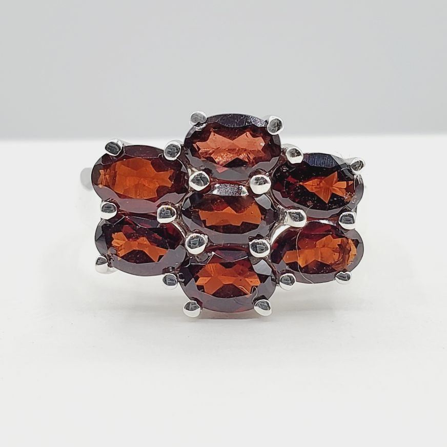 Sterling Silver Natural Garnet Ring, 7 Garnet (3.3cts), W/A $620.00, Size 7.25, Garnet is the birthstone for January.