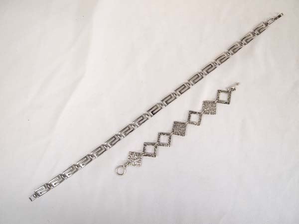 Sterling Silver Necklace and Bracelet, bracelet measures 7'' x 1'' and weighs 16.5g, necklace measures 16'' x 3/8'' and weighs 26g and is stamped .925