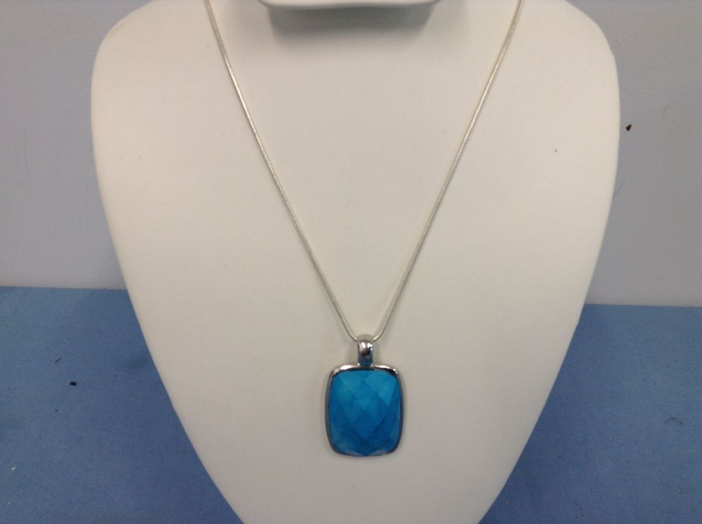 Sterling Silver Necklace and Pendant With Genuine Howlite