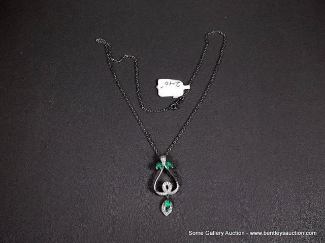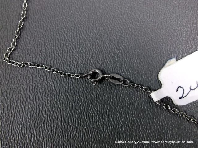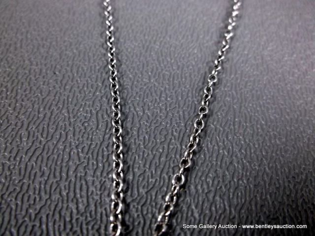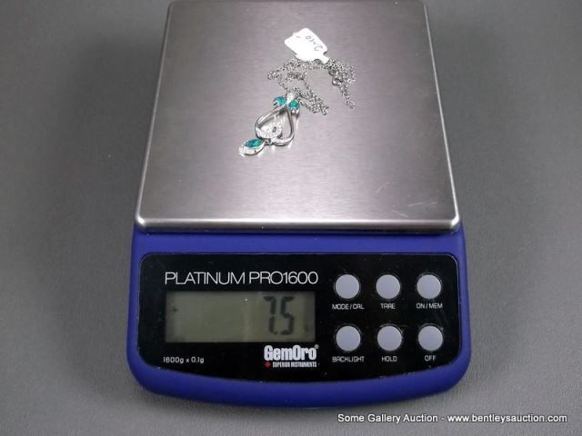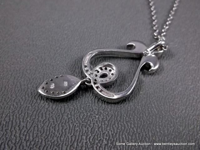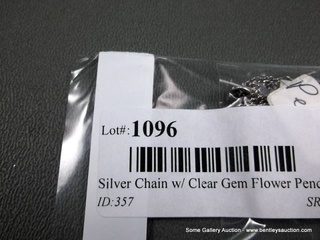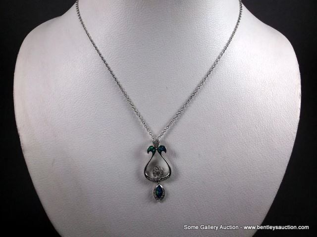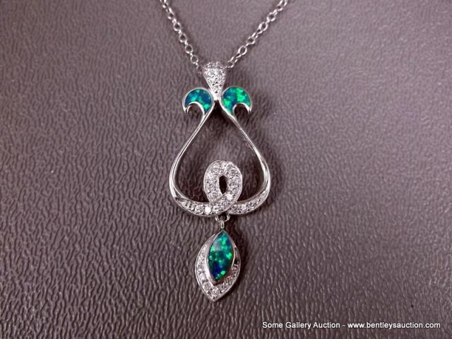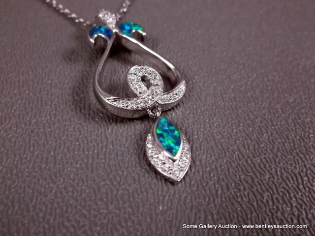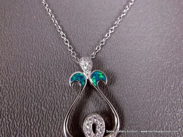 Sterling Silver Necklace and Pendant w/ Opal and Clear Gems-Marked w/ a Double Loop Weight: 7.5 Gram