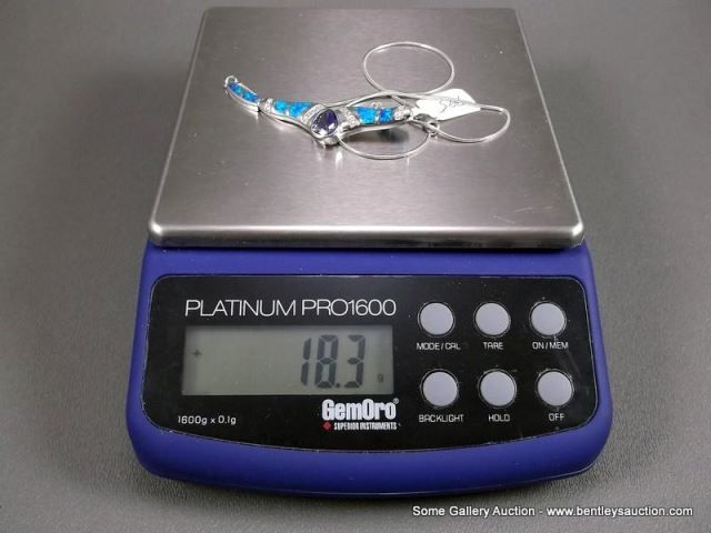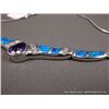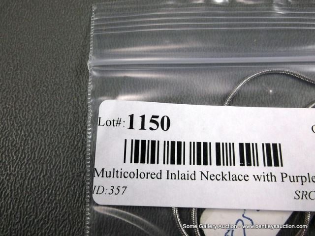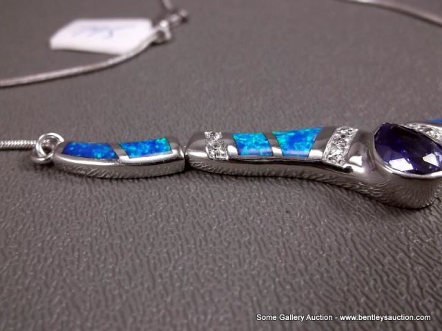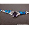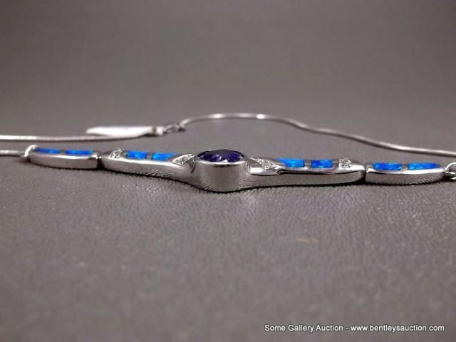 Sterling Silver Necklace w/ Amethyst, Opal and Clear Gems-Marked w/ Double Loop Weight: 18.3 Grams R