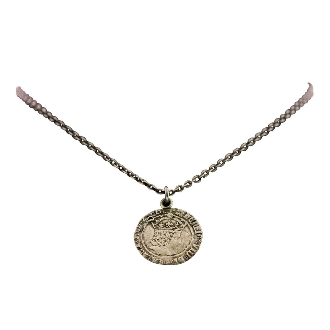 One Sterling Silver Necklace with 1509-1526 Henry VIII Groat Silver Coin.