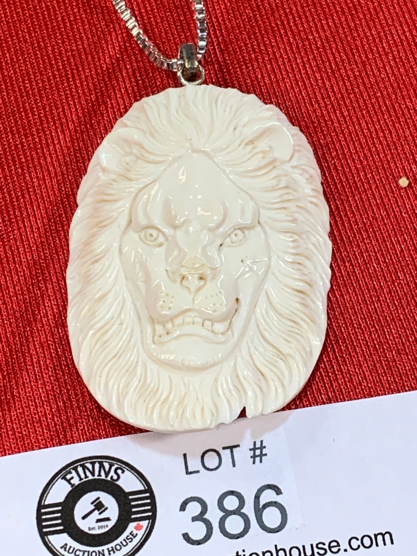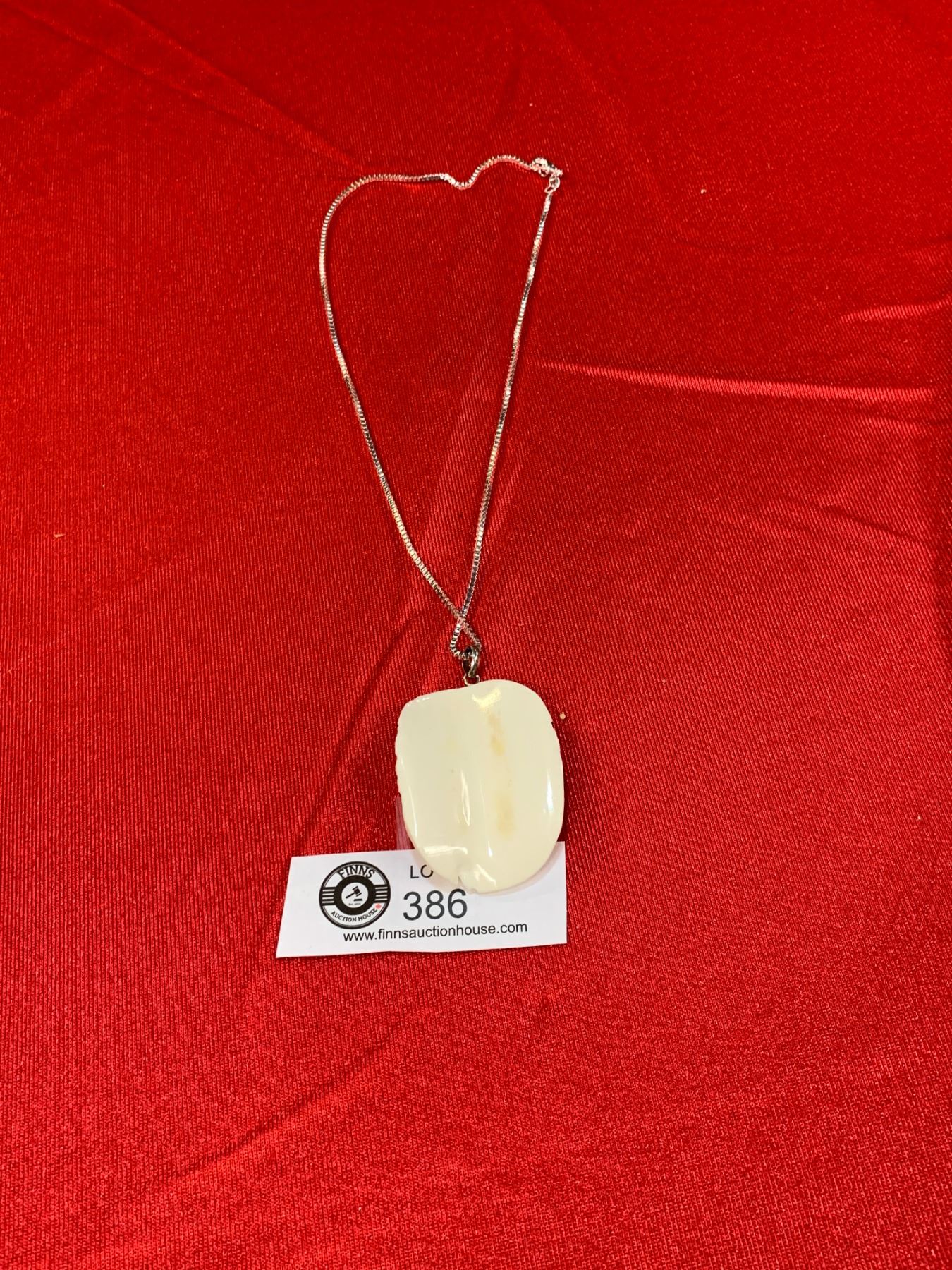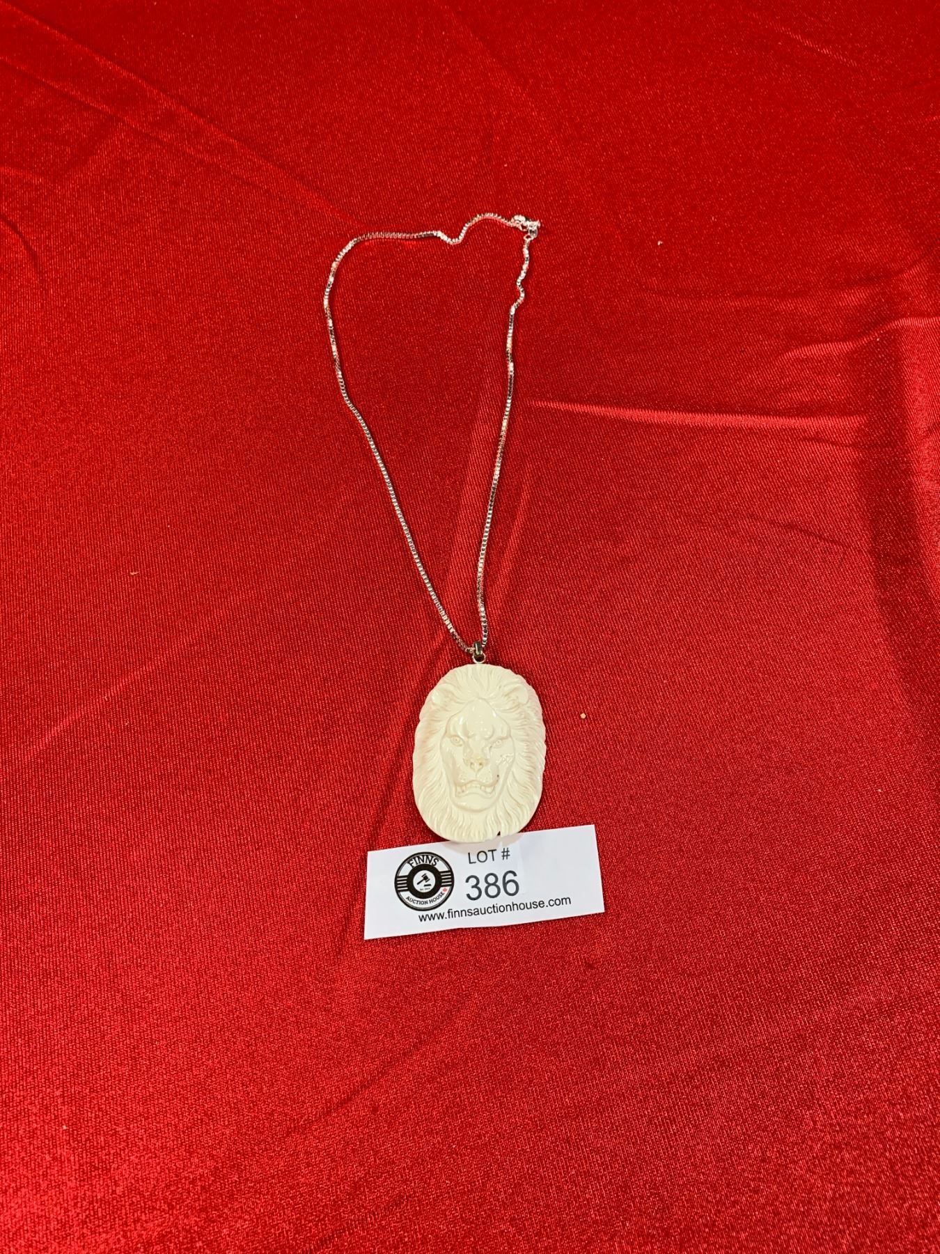 Sterling Silver Necklace with a Nice Bone Carved Lion Face Pendant