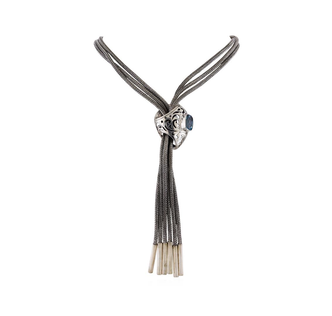 One of a kind high fashion sterling silver Necklace weighing 141.6 grams. Containing: Blue Topaz. This sterling silver promises a lasting shine.