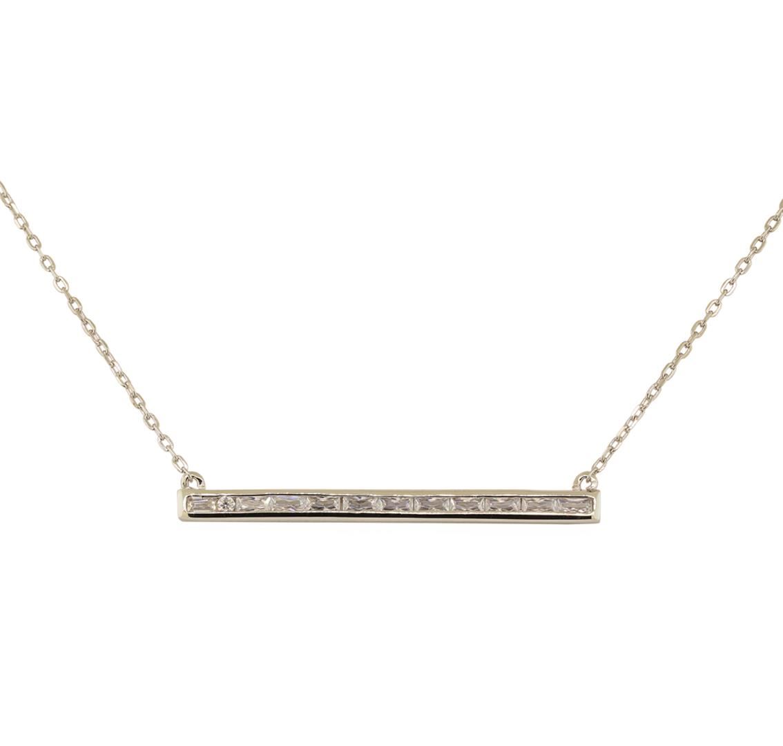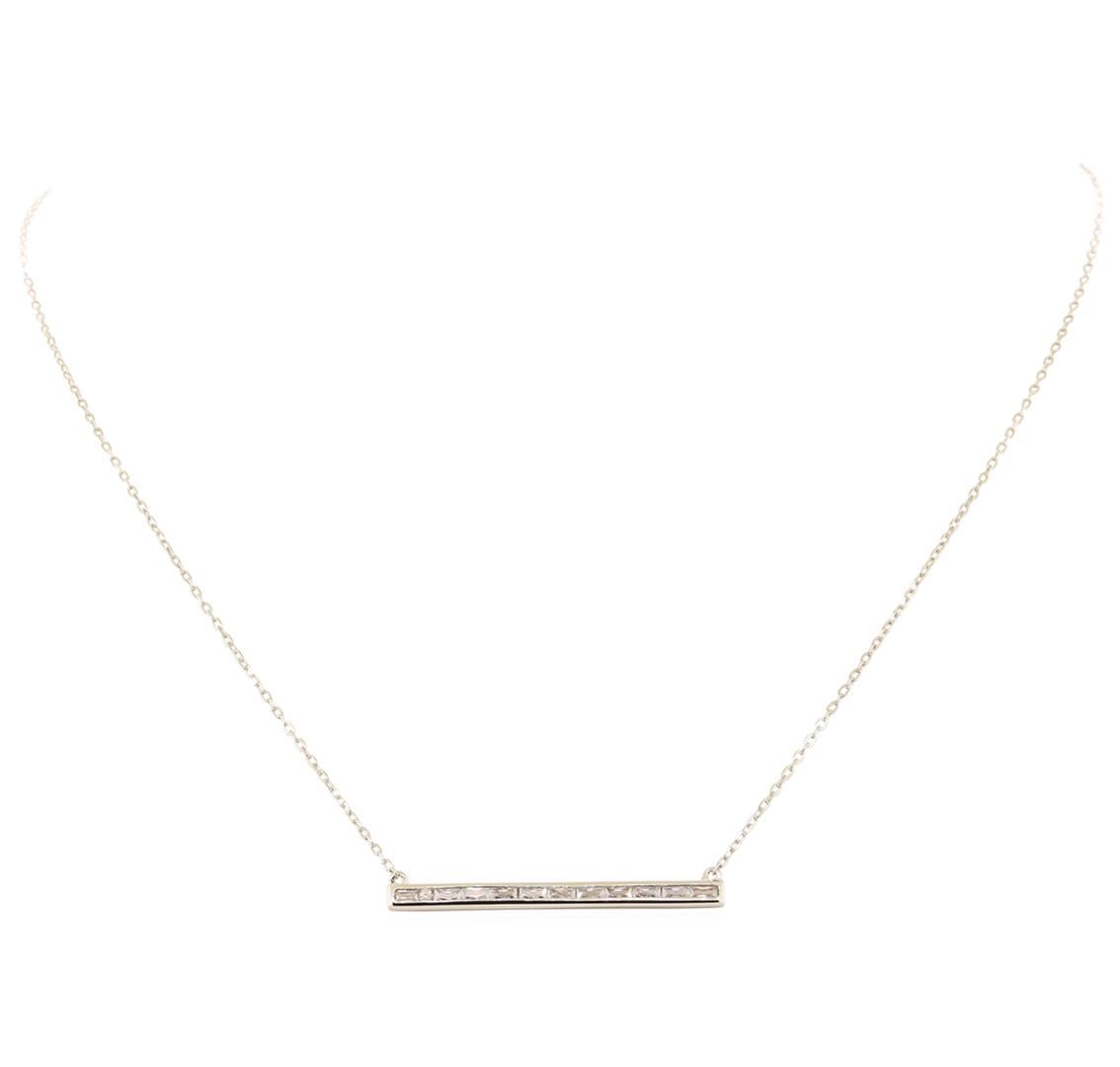 One of a kind high fashion sterling silver Necklace weighing 2.8 grams. Containing: Cubic Zirconia. This sterling silver promises a lasting shine.
