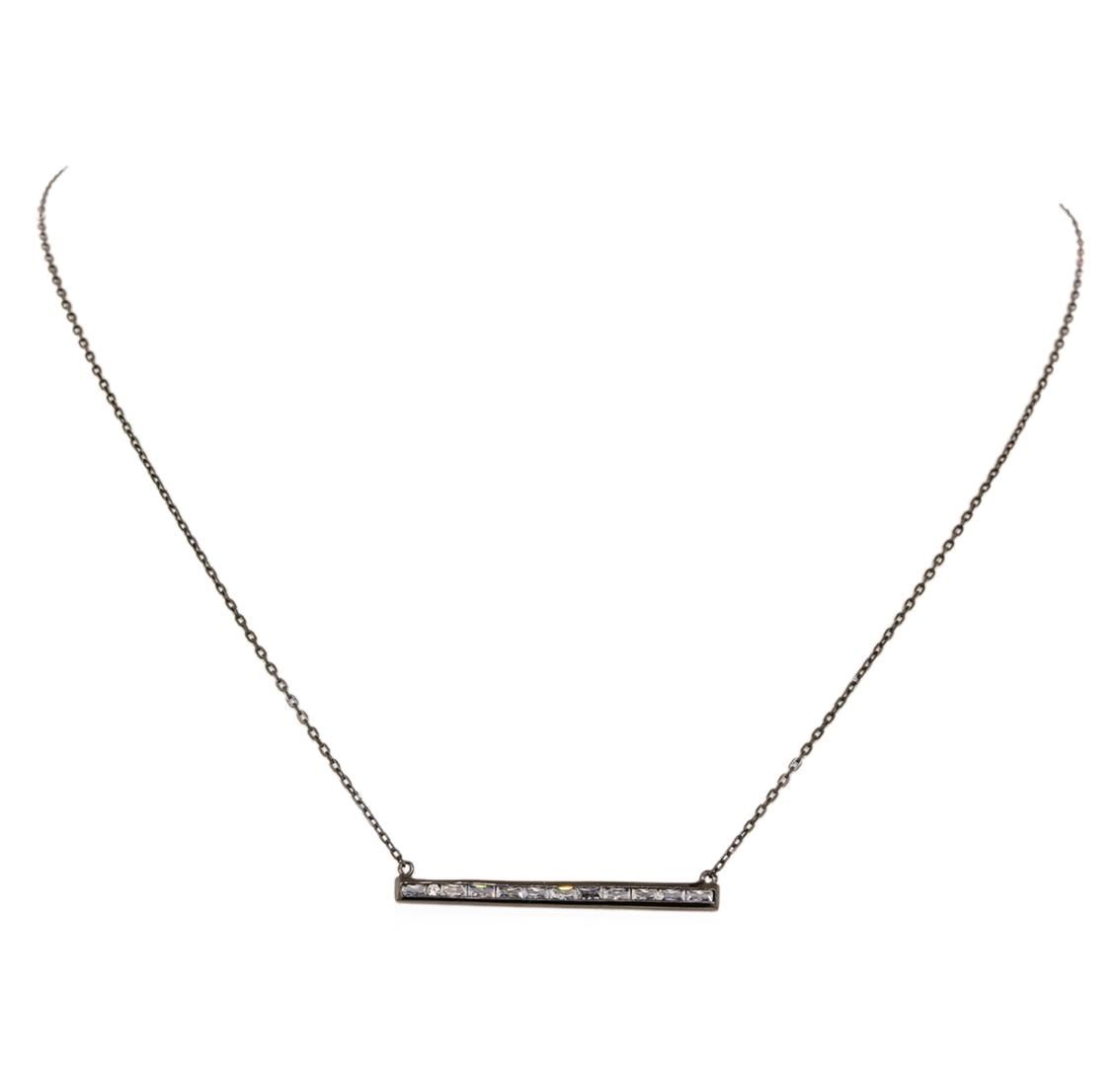 One of a kind high fashion sterling silver Necklace weighing 2.8 grams. Containing: Cubic Zirconia. This sterling silver promises a lasting shine.