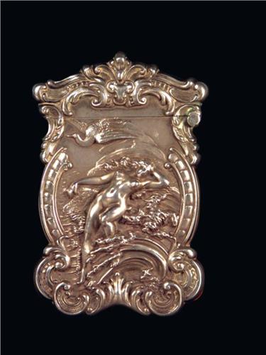 Sterling Silver Nude Match Safe, Very high relief. Monogram A.M. Excellent condition. 1 7/8 X 2 /34 inches.