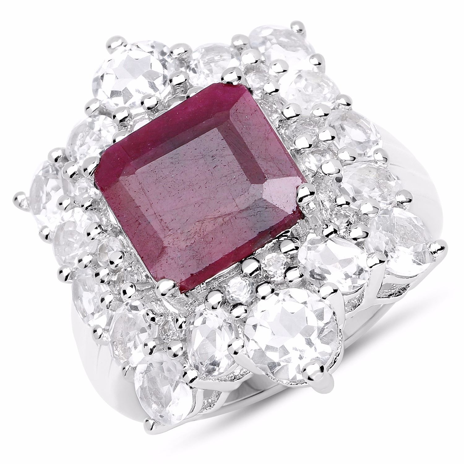 Ruby Octagon 10.00mm - 1Pc + White Topaz Oval 4x3mm - 10Pcs + White Topaz Round 5.00mm - 2Pcs + White Topaz Round 4.00mm - 4Pcs + White Topaz Round 1.70mm - 8Pcs + White Topaz Round 1.40mm - 4Pcs