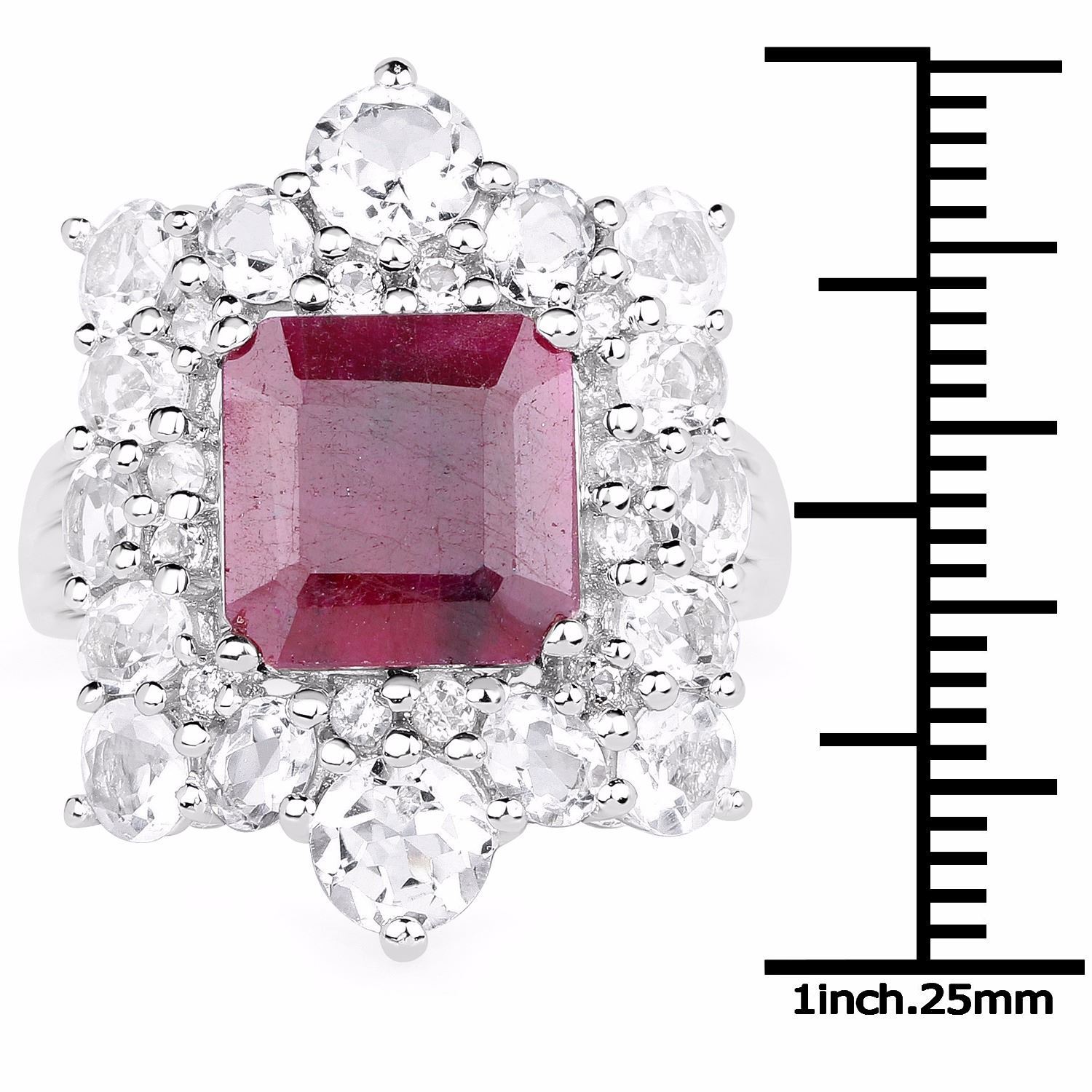 Ruby Octagon 10.00mm - 1Pc + White Topaz Oval 4x3mm - 10Pcs + White Topaz Round 5.00mm - 2Pcs + White Topaz Round 4.00mm - 4Pcs + White Topaz Round 1.70mm - 8Pcs + White Topaz Round 1.40mm - 4Pcs
