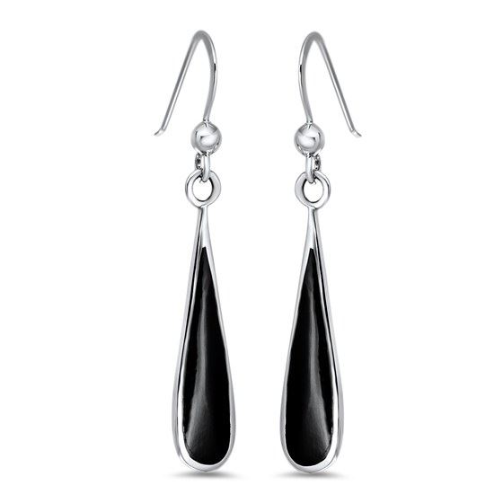 One piece Sterling Silver Onyx Dangle Earrings