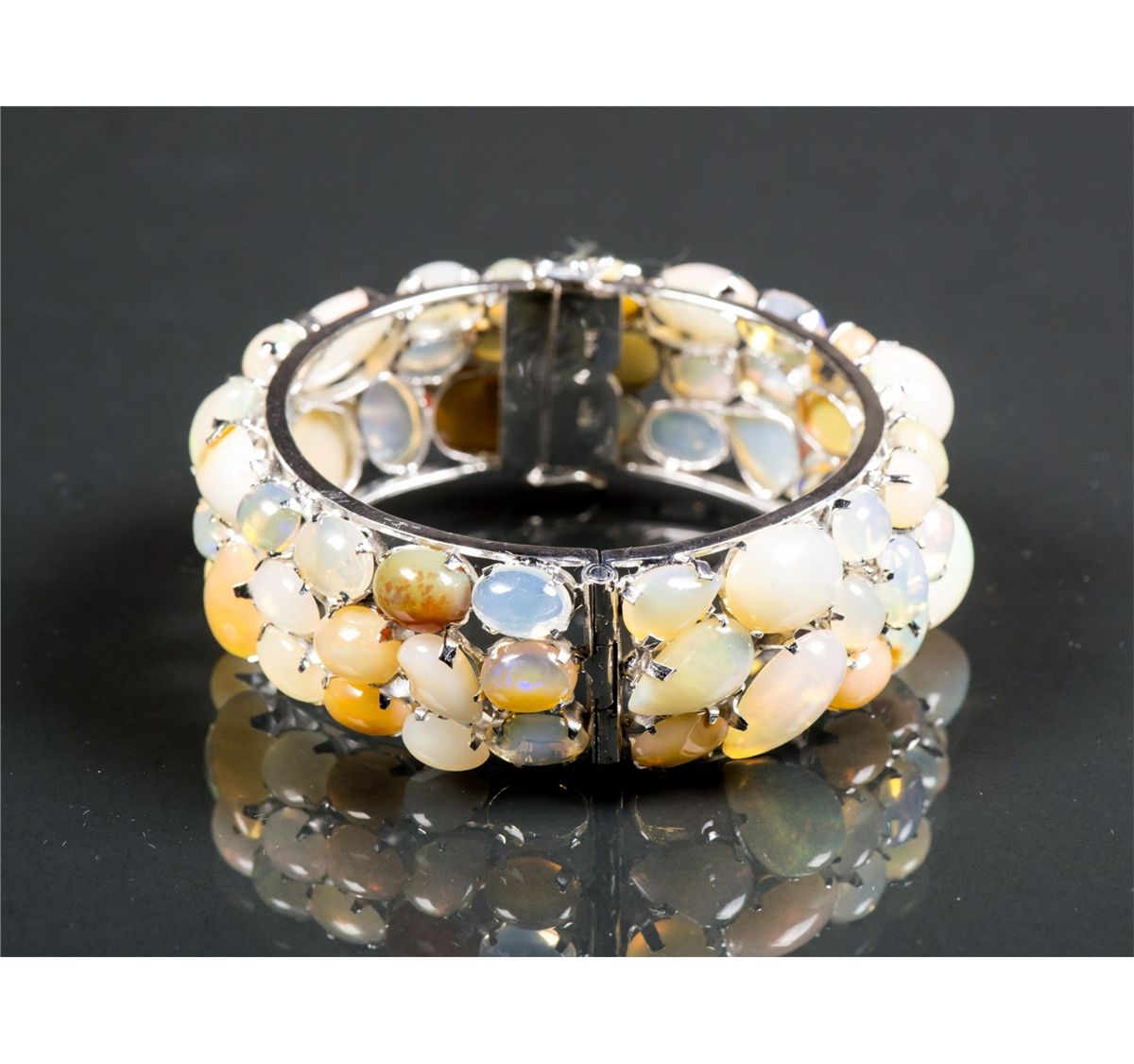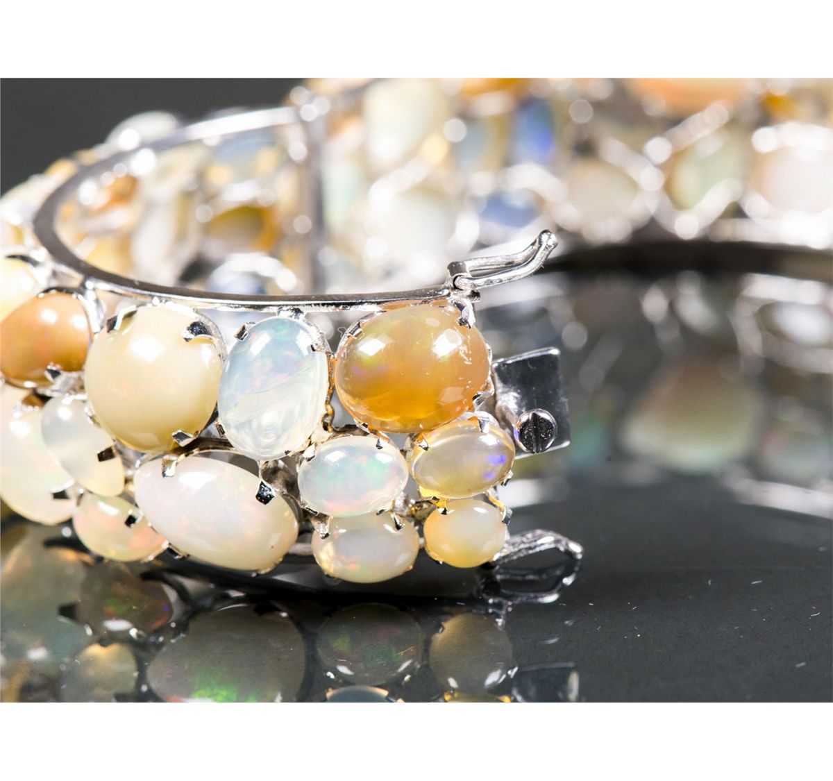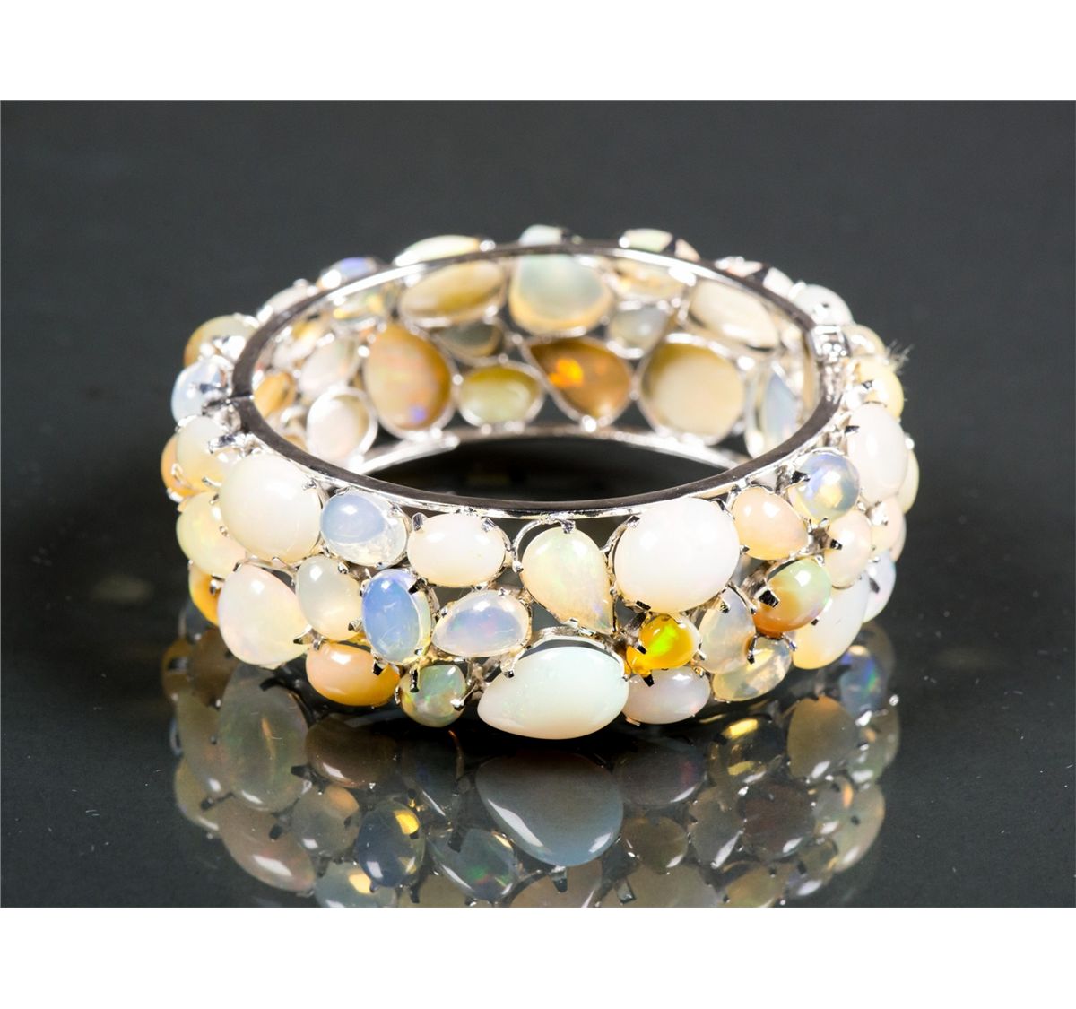 Stamped 925 silver gemstone bracelet; comprised of multi colour natural opal; replacement value CAD$4730; 42.6 grams