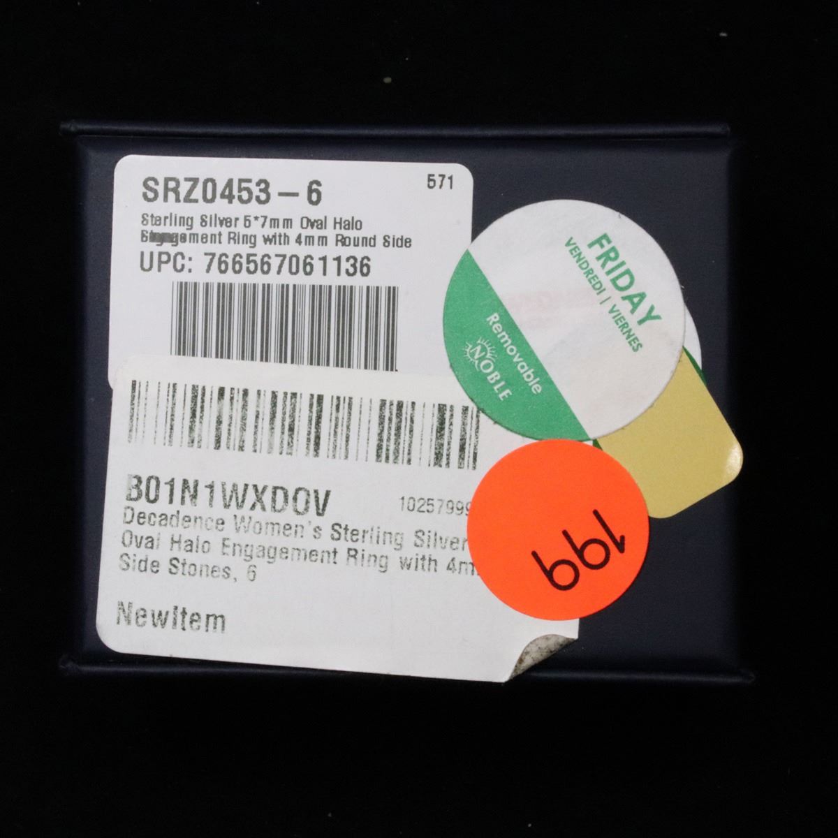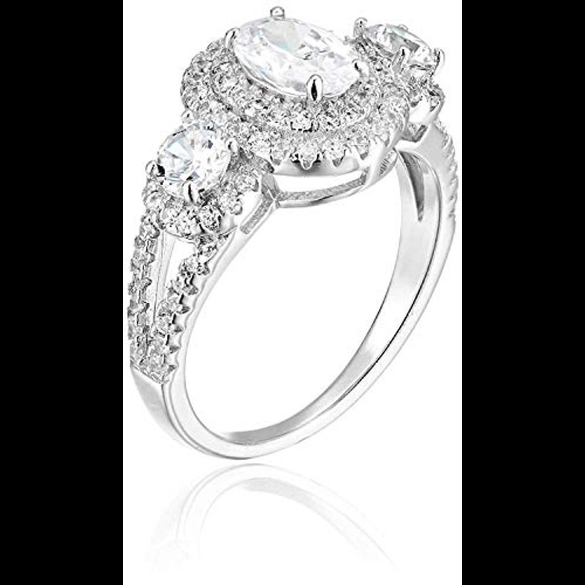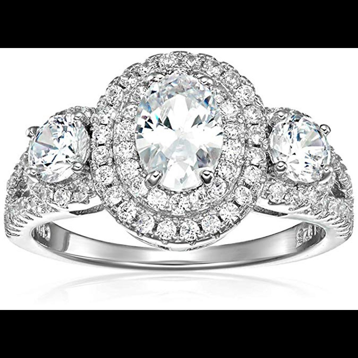 Sterling Silver Oval Halo Engagement Ring with Round Side Stones, Oval Cubic Zirconia Size 6 . .. This is made of solid 925 Sterling Silver and each piece is carefully trademarked with the metal purity for certification. Each piece is stamped 925 and guarantees quality and craft. DESIGN & FINISH: Each piece is carefully designed from scratch by our design department and we present to you our finished product. We trust that you will greatly enjoy the quality of our product! PLATING & COLOR: This ring is coated with the highest quality of rhodium, giving you long lasting durability and color. This allows the product to maintain its colors over long periods of time. PACKAGING: Each precious piece is carefully packed in our beautiful gift box. We trust that you will really enjoy our product and it would make a great gift for all!