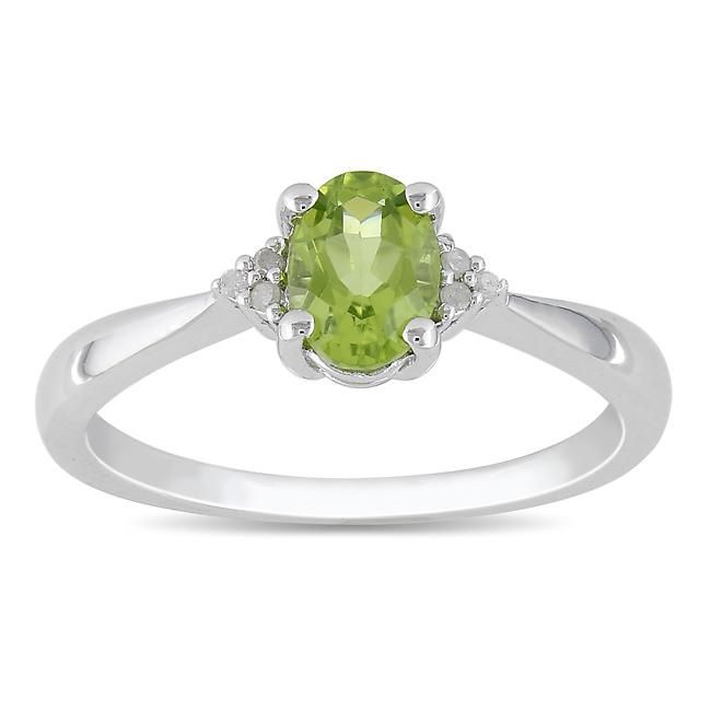 Sterling Silver Oval Peridot and Diamond-accented Ring Item#: 13347234