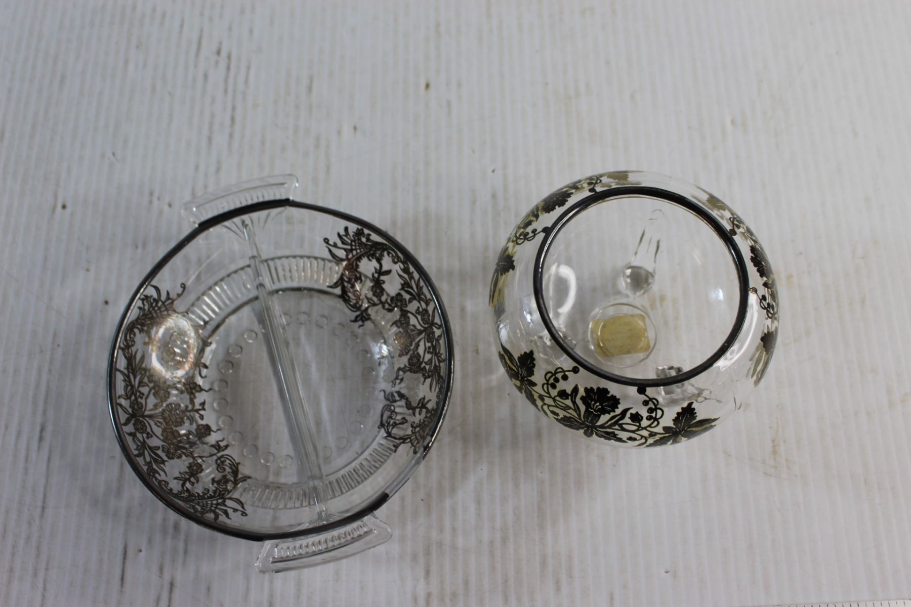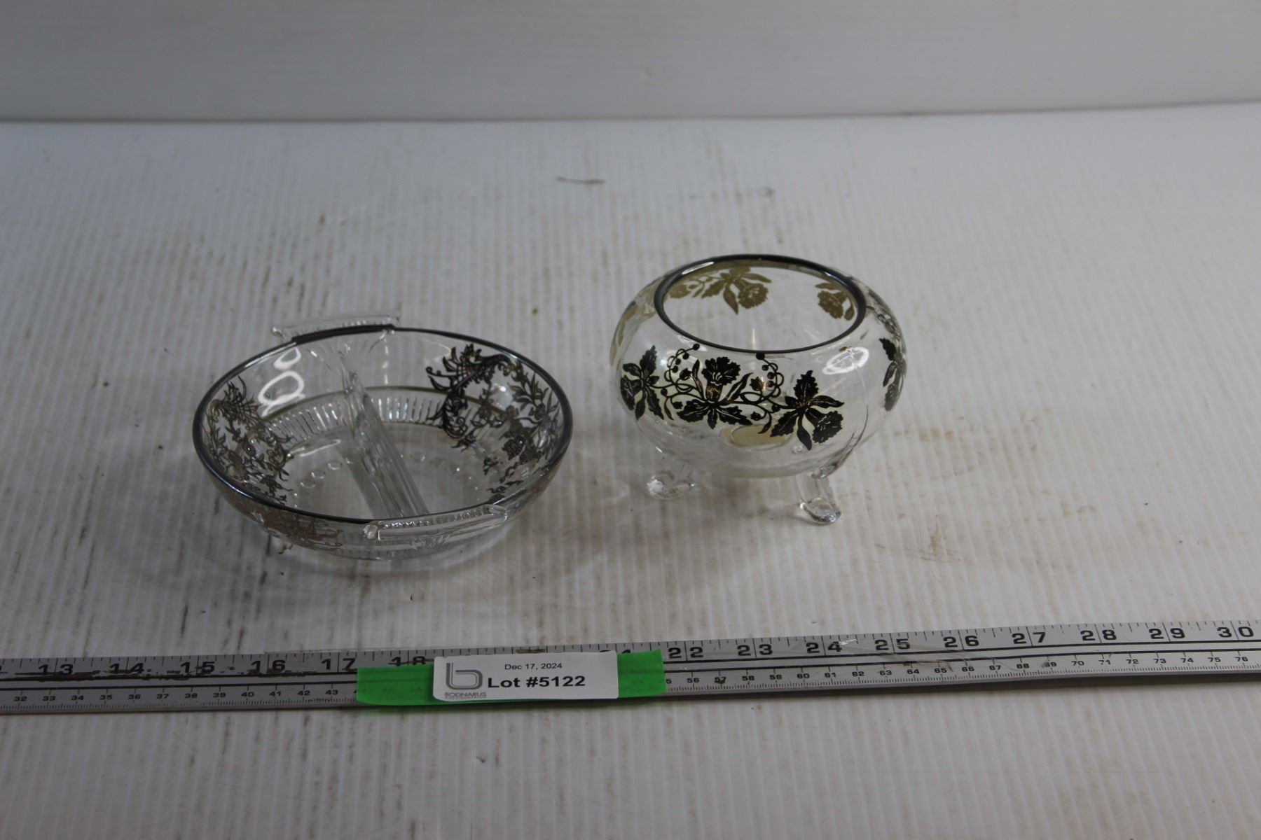 Sterling Silver Overlay Divided Glass Bowl and Candy Dish