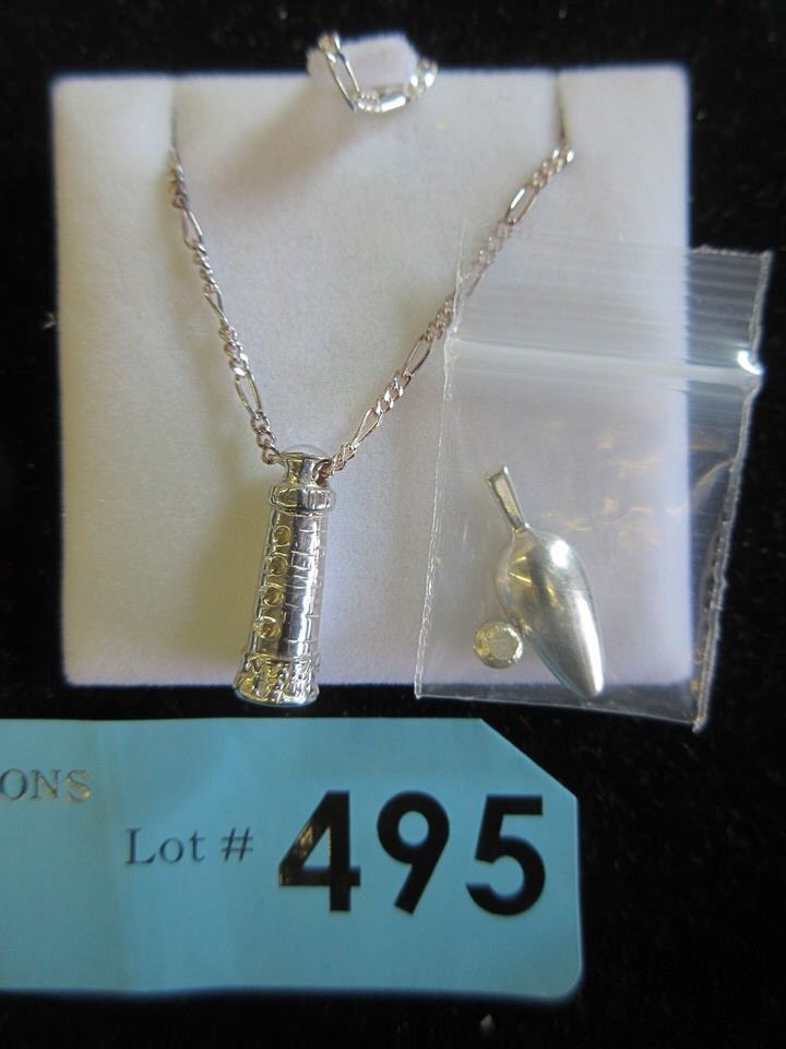 Includes mini scoop and chain. Rhodium plated.