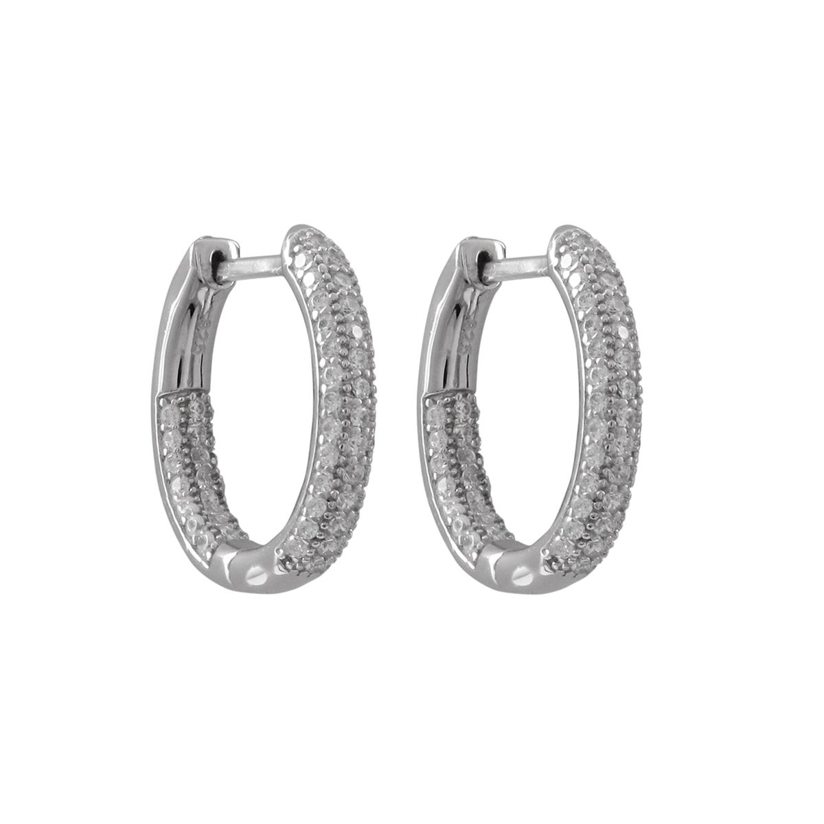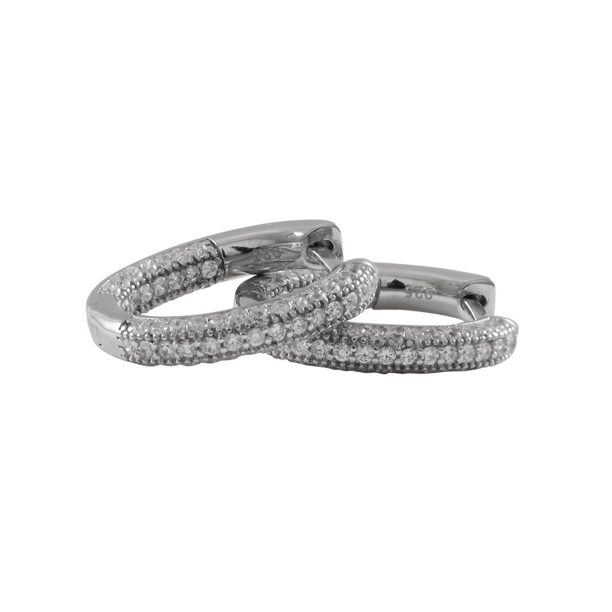 Sterling Silver Pave CZ 16X20mm Hoop Earrings With Hinge Lock