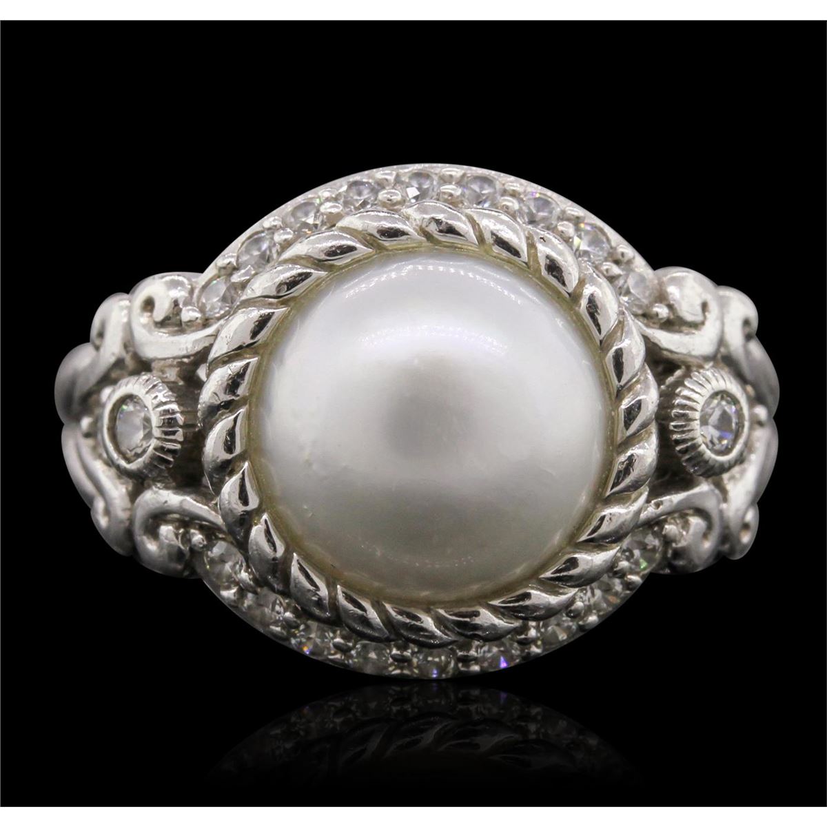 One ring featuring: Sterling Silver, Pearl and Cubic Zirconia, weighing a total of 12.60 grams.
