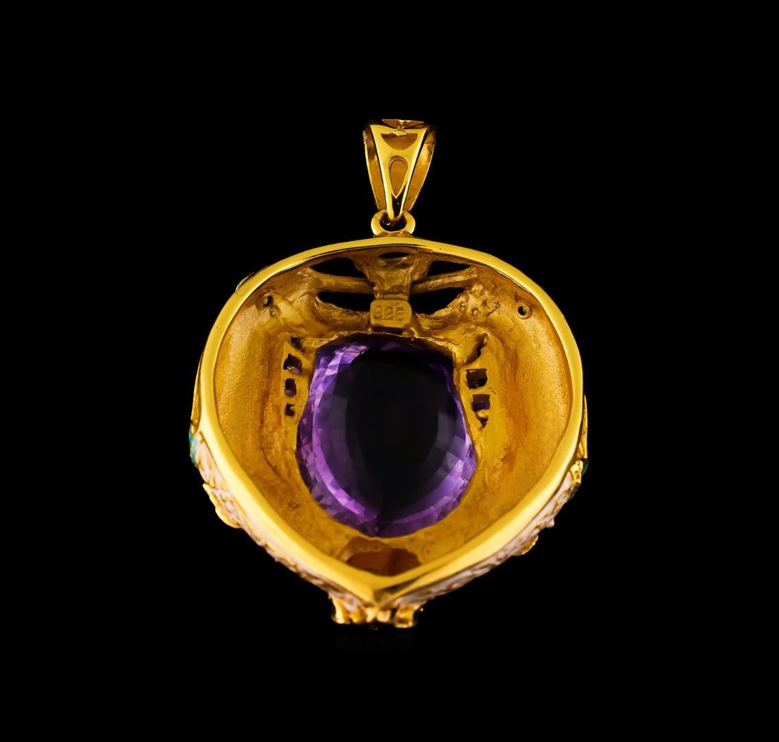 One of a kind high fashion sterling silver Pendant weighing 49.6 grams. Containing: Amethyst, Tourmaline, Violet Enamel Inlay, Turquoise Enamel Inlay. This sterling silver promises a lasting shine.