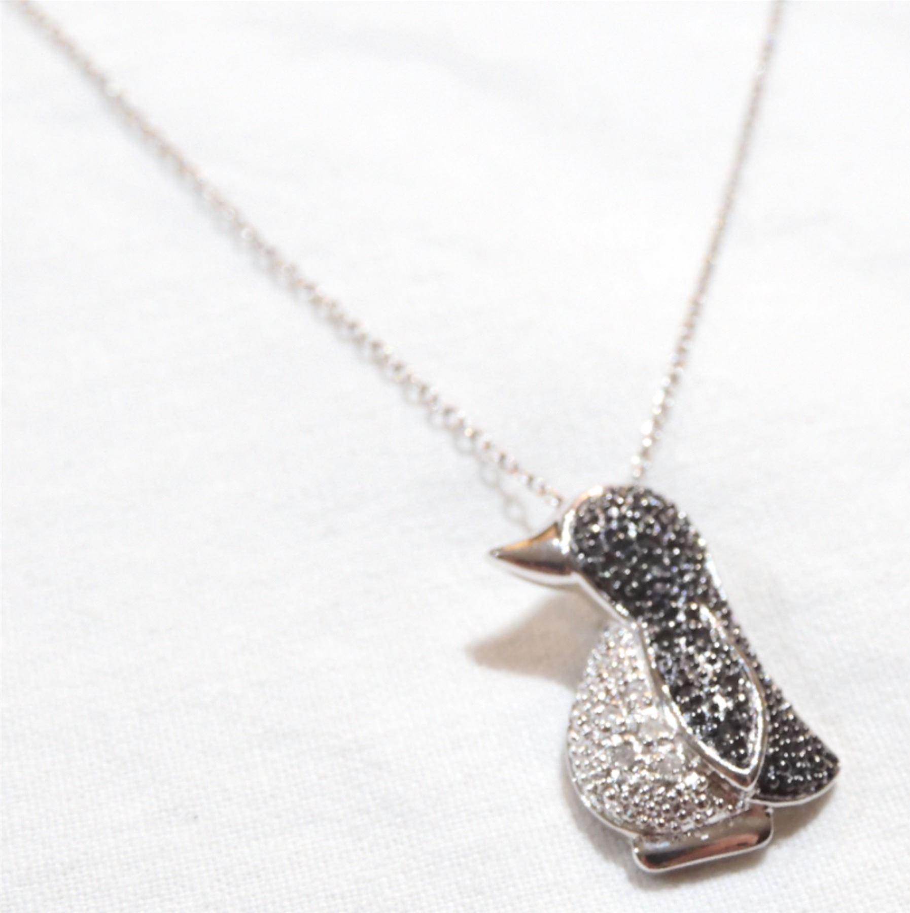 Sterling Silver Penguin Pendant with Diamond Accents on 18" Chain.