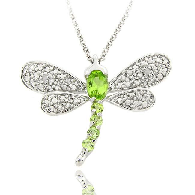 Sterling Silver Peridot and Diamond Accent Dragonfly Necklace Item#: 13073891