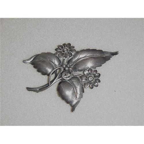 3 3/4" x 2 1/4" Sterling Silver Pin of leaf form and nice weight . Signed sterling on reverse.