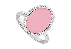 A beautifully prong-set large oval shape pink chalcedony in the center & is surrounded by small silver beads along with four round white CZs sparkling in between silver beads. Other smaller gold beads adorn both sides. This perfect design ring is made in .925 sterling silver & has a total gem weight (TGW) of 15.08 carats. It also available matching pendant model no. PDBK70344AGCZCPK and Earrings model no. ERBK70384AGCZCPK.